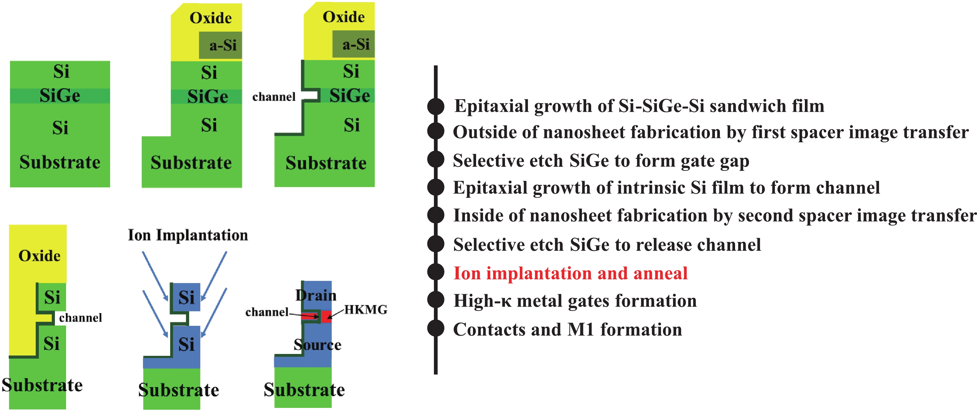 Key words: vertical channel transistor, source/drain ion implantation, on-state current, dummy gates