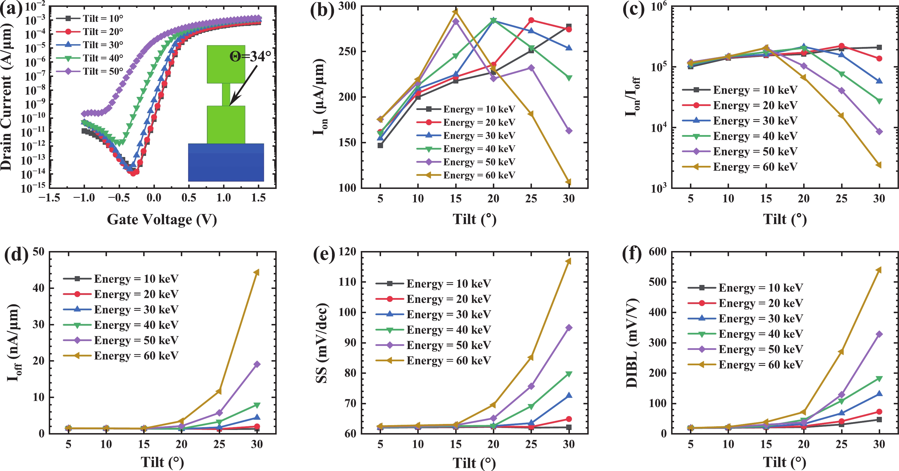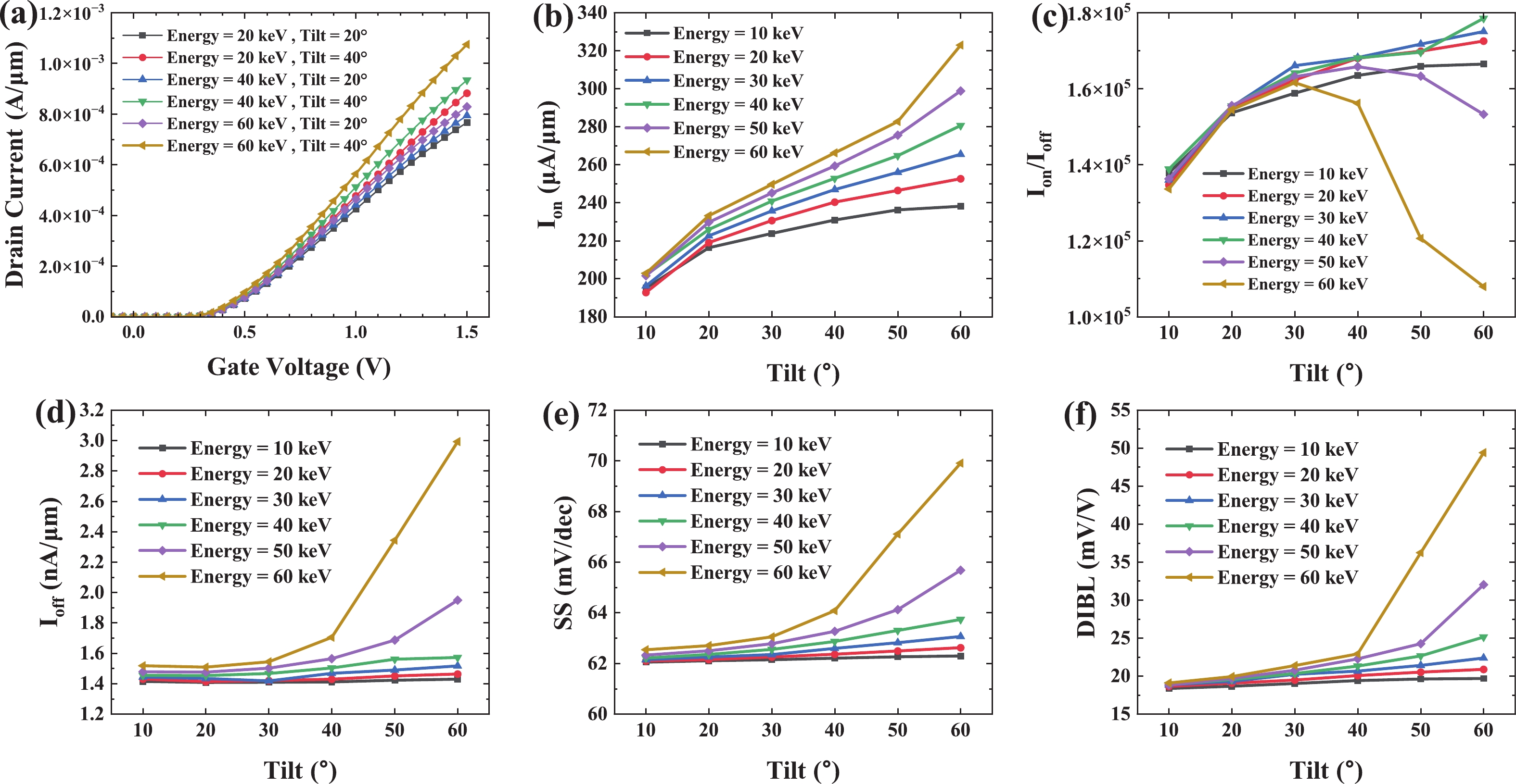 Abstract: In vertical channel transistors (VCTs), source/drain ion implantation (I/I) represents a significant technical challenge due to inherent three-dimensional structural constraints, which induce complications such as difficulties in dummy gate formation and shadowing effects of I/I. This article systematically investigates the impact of different implantation conditions on the performance of VCTs with and without dummy gates through TCAD simulation. It reveals the significant role of the lightly doped regions (LDRs) naturally formed due to ion implantation in source/drain of VCTs. Furthermore, it was found that VCT without dummy gates can achieve an approximately 27% increase in on-state current (Ion) under the same implantation conditions, and can greatly simplify the process flow and reduce costs. Finally, N-type and P-type VCTs were successfully fabricated using this implantation method.