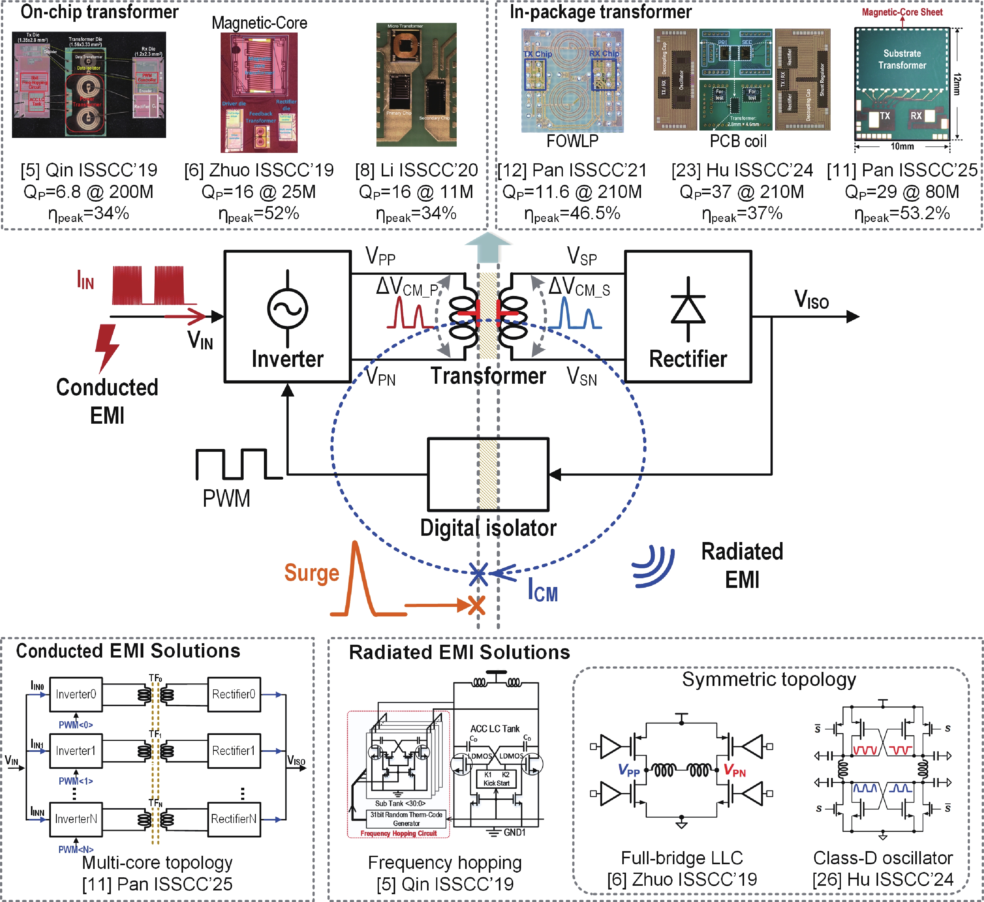 Qin W H, Yang X, Ma S Y, et al. An 800mW fully integrated galvanic isolated power transfer system meeting CISPR 22 Class-B emission levels with 6dB margin. 2019 IEEE International Solid- State Circuits Conference-(ISSCC), 2019, 246 doi: 10.1109/ISSCC.2019.8662349