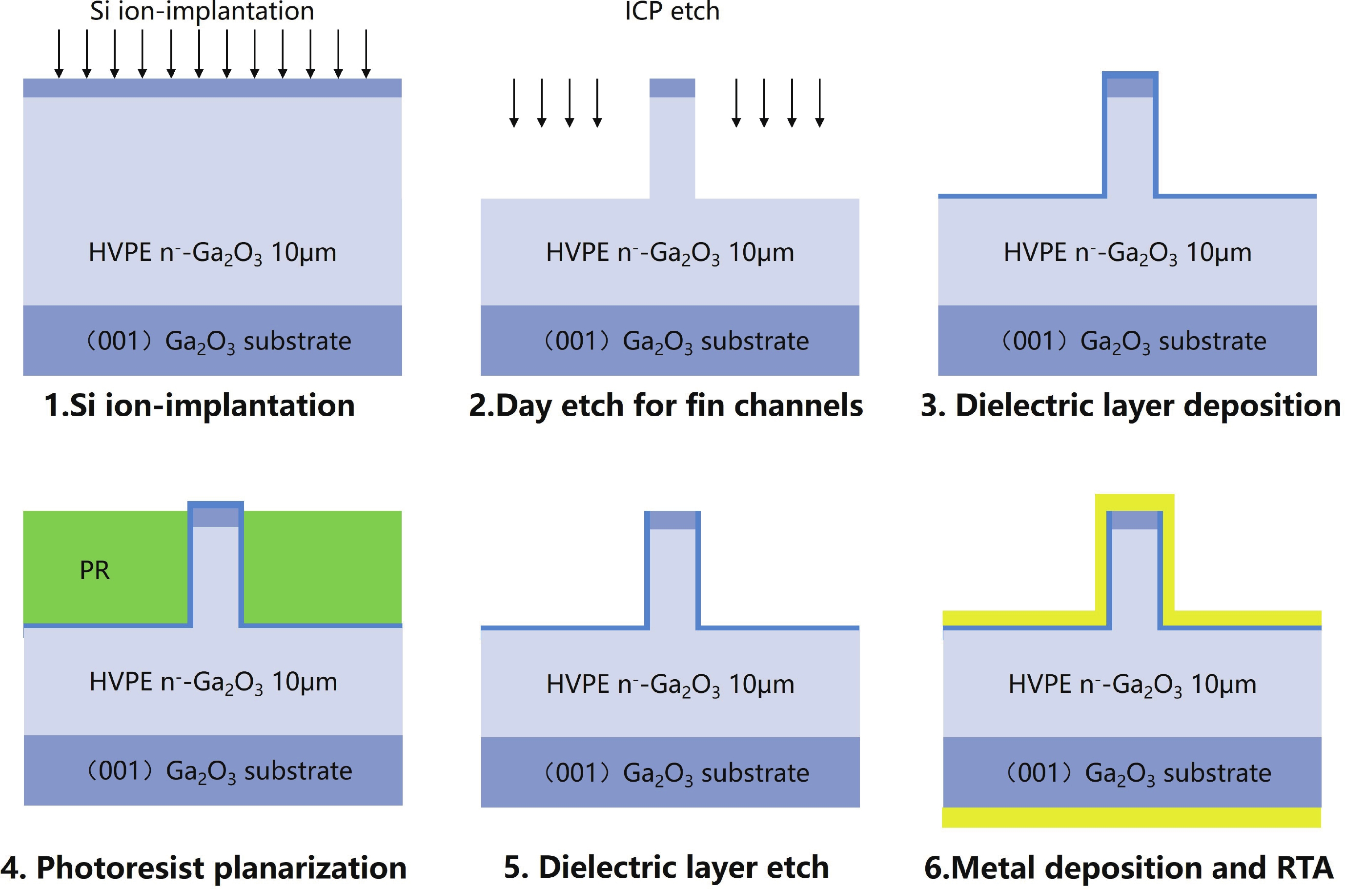 Key words: β-Ga2O3, Fin-channel diode, self-align, RESUFE, breakdown voltage