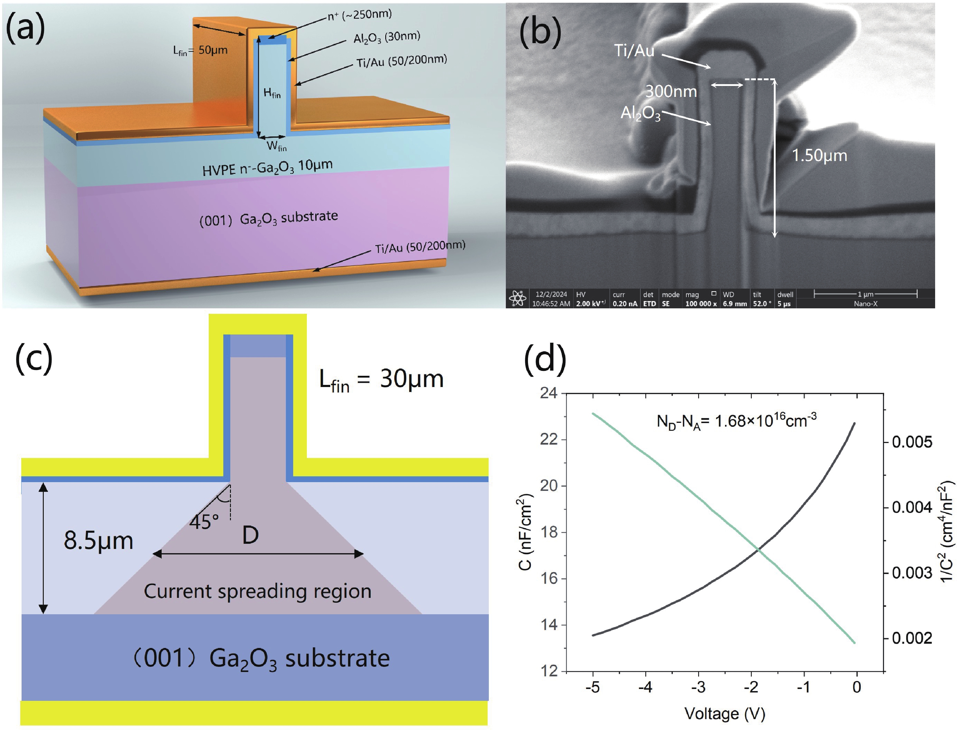 Gaofu Guo, Xiaodong Zhang, Chunhong Zeng, Dong Wei, Dengrui Zhao, Tiwei Chen, Zhucheng Li, Anjing Luo, Guangyuan Yu, Yu Hu, Zhongming Zeng, Baoshun Zhang, Xianqi Dai. 1.1 kV/0.72 GW/cm2 β-Ga2O3 Fin-channel diode with ohmic contacts anode[J]. Journal of Semiconductors, 2026, 47(3): 032502. doi: 10.1088/1674-4926/25050032