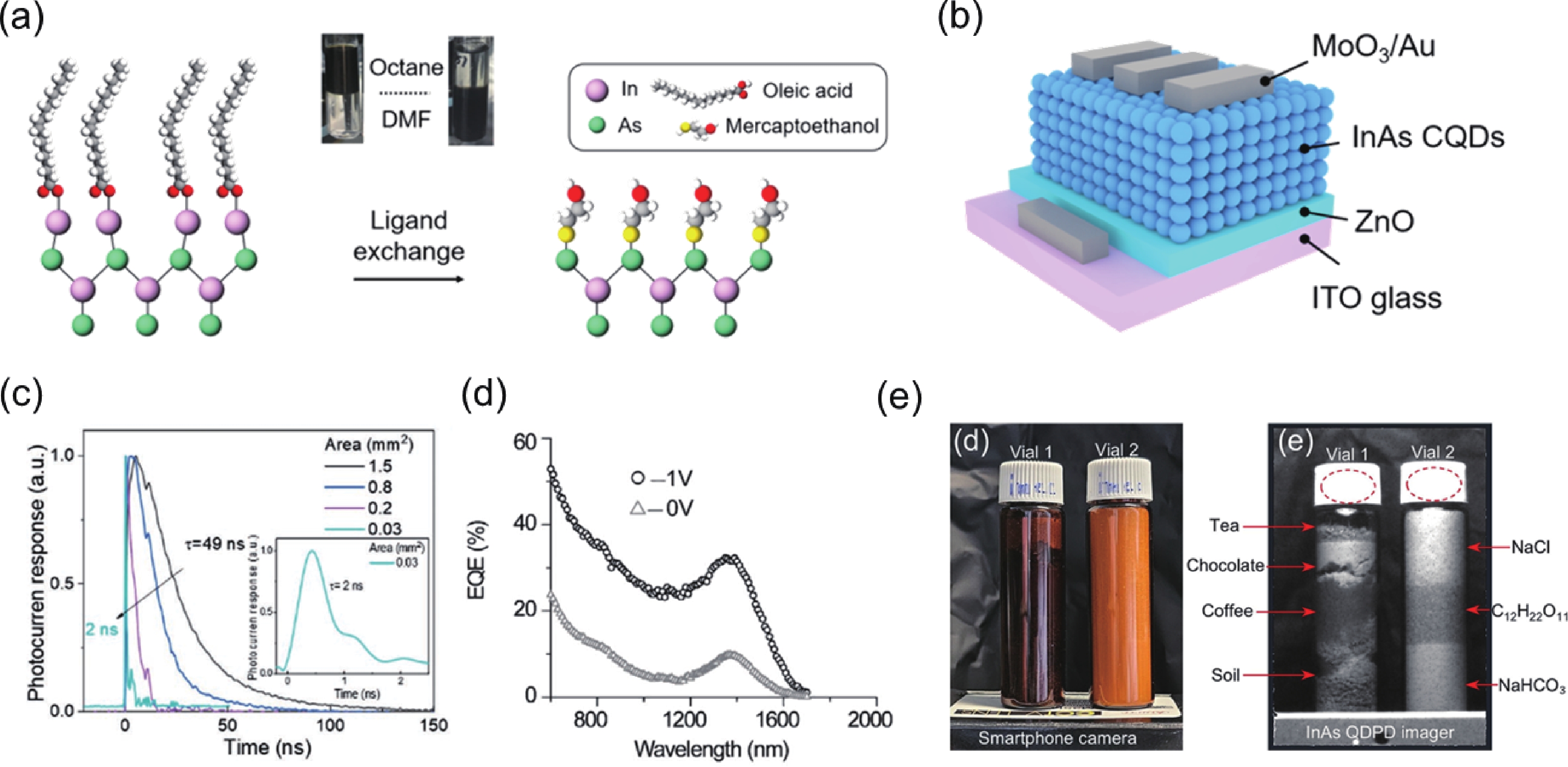 Zhang Y N, Imran M, Xia P, et al. Nucleophilic covalent ligands enable simultaneous surface reconstruction and passivation of colloidal InSb quantum dots for stable short-wave infrared photodetectors. Angew Chem Int Ed, 2025, 64(28): e202505179 doi: 10.1002/anie.202505179