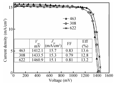 Abstract: GaInP and AlGaInP solar cells were grown by metal organic chemical vapor deposition (MOCVD), and theoretical analysis demonstrated that hetero-interface recombination velocity plays an important role in the optimizing of cell performance, especially the interface between base layer and back surface field (BSF). Measurements including lattice-matched growth and pseudo-BSF were taken to optimize BSF design. Significant improvement of Voc in GaInP and AlGaInP solar cells imply that the measures we took are effective and promising for performance improvement in the next generation high efficiency solar cells.