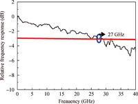 Abstract: This paper presents a high-responsivity and high-speed InGaAs/InP PIN photodetector integrated onto the silicon waveguide substrate utilizing the divinyltetramethyldisiloxane-benzocyclobutene (DVS-BCB) adhesive bonding method. A grating coupler is adopted to couple light from the fiber to the silicon waveguide. Light in the silicon photonic waveguide is evanescently coupled into the photodetector. The integrated photodetector structure is first simulated using the FDTD (finite difference time domain) solutions software and the simulation results show a detection efficiency of 95%. According to the simulation result, the integrated photodetector is fabricated. The measured responsivity of the fabricated integrated photodetector with a detection length of 30 μm is 0.89 A/W excluding the coupling loss between the fiber and the grating coupler and the silicon propagation loss at the wavelength of 1550 nm with a reverse bias voltage of 3 V. Measured 3-dB bandwidth is 27 GHz using the Lightwave Component Analyzer (LCA). The eye diagram signal test results indicate that the photodetector can operate at a high speed of 40 Gbit/s. The integrated photodetector is of great significance in the silicon-based optoelectronic integrated chip which can be applied to the optical communication and the super node data transmission chip of the high-performance computer.