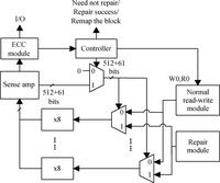 Abstract: Resistive random access memory (RRAM) is one of the promising candidates for future universal memory. However, it suffers from serious error rate and endurance problems. Therefore, exploring a technical solution is greatly demanded to enhance endurance and reduce error rate. In this paper, we propose a reliable RRAM architecture that includes two reliability modules: error correction code (ECC) and self-repair modules. The ECC module is used to detect errors and decrease error rate. The self-repair module, which is proposed for the first time for RRAM, can get the information of error bits and repair wear-out cells by a repair voltage. Simulation results show that the proposed architecture can achieve lowest error rate and longest lifetime compared to previous reliable designs.