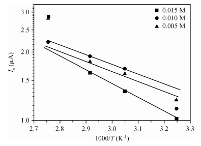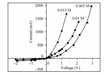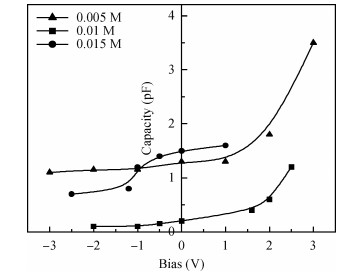Table 2. Variation of the saturation current, ideality factor and potential barrier as a function of different cupric chloride salt concentration.