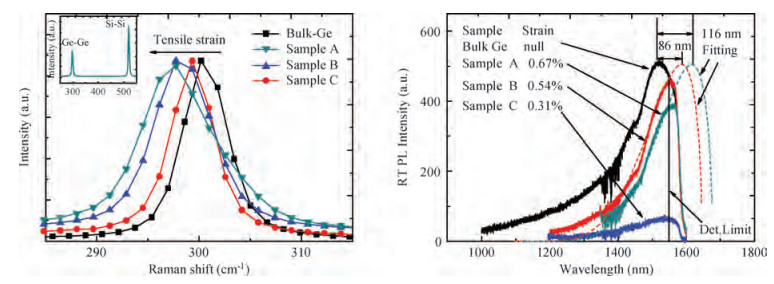 Key words: Ge, Ge-on-insulator, Si-based, epitaxy, light emitting diode, photodetector, MOSFET