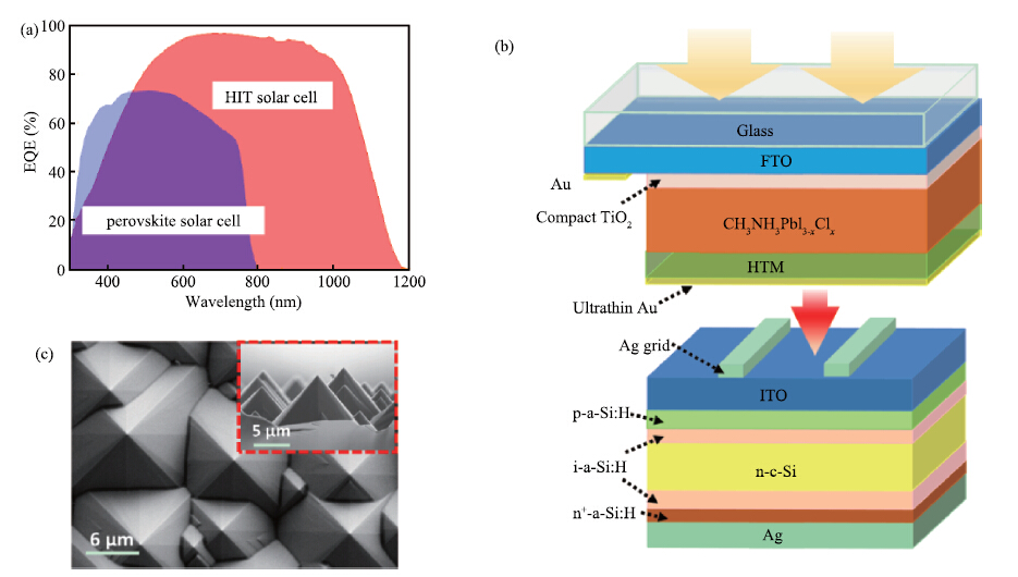 Key words: lanar perovskite top cell, silicon heterojunction bottom cell, four-terminal tandem, transparent ultrathin gold electrode