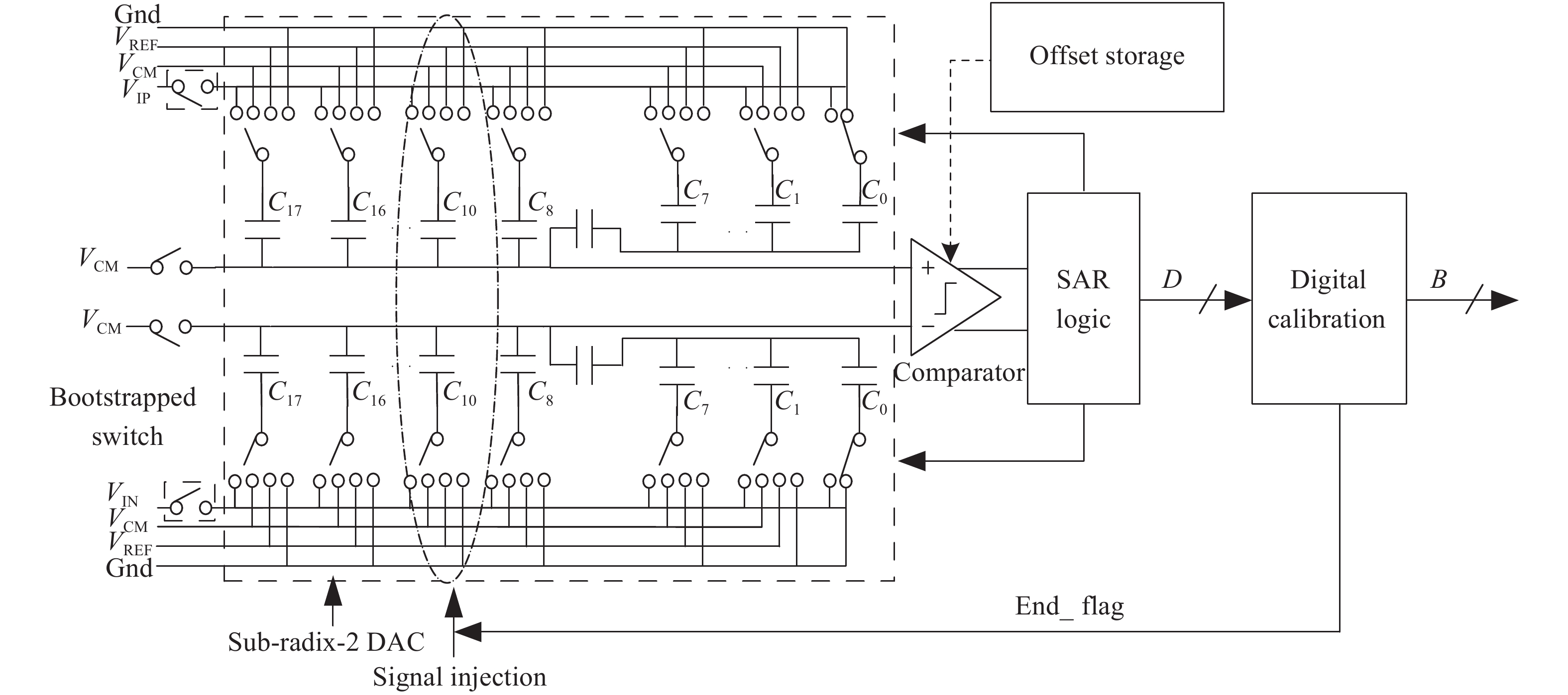 Key words: sub-2 radix, split-capacitor SAR ADC, redundancy, digital calibration, high resolution