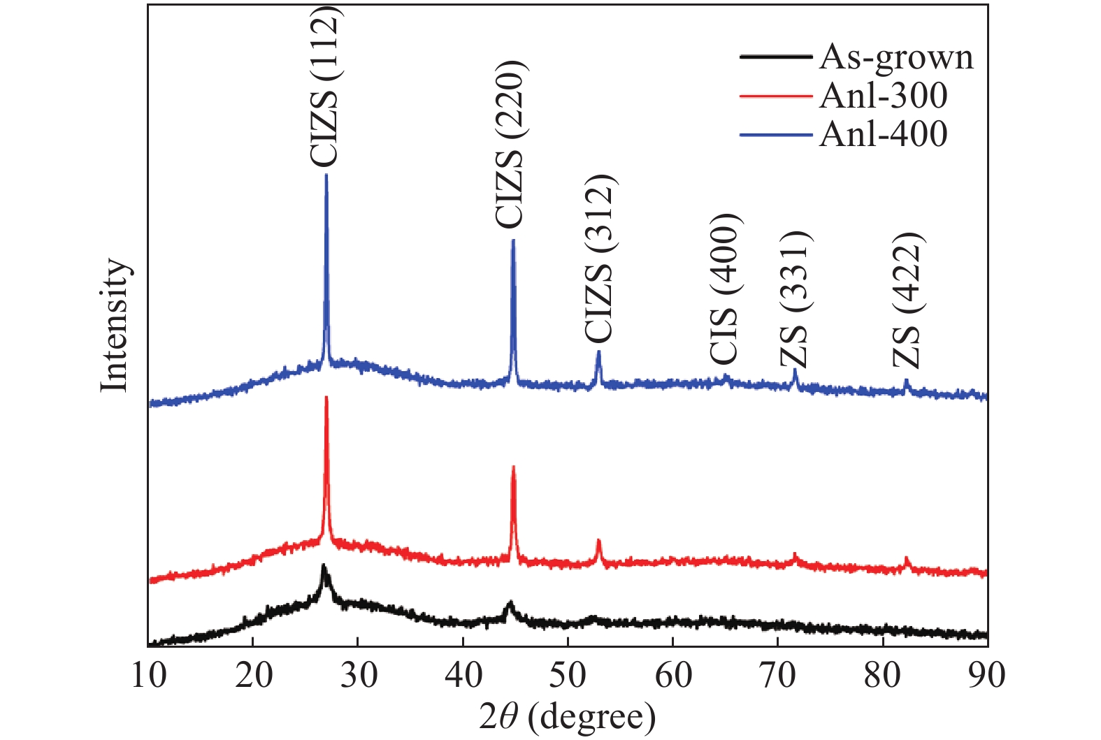 Table 1. EDS results of as-grown and annealed CIZS thin films.