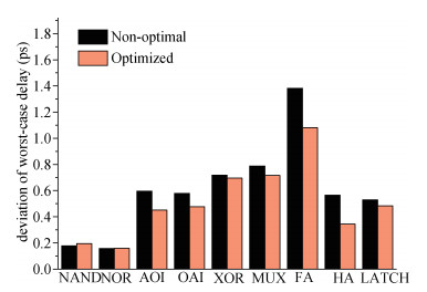 Abstract: With shrinking transistor feature size, the fin-type field-effect transistor (FinFET) has become the most promising option in low-power circuit design due to its superior capability to suppress leakage. To support the VLSI digital system flow based on logic synthesis, we have designed an optimized high-performance low-power FinFET standard cell library based on employing the mixed FBB/RBB technique in the existing stacked structure of each cell. This paper presents the reliability evaluation of the optimized cells under process and operating environment variations based on Monte Carlo analysis. The variations are modelled with Gaussian distribution of the device parameters and 10000 sweeps are conducted in the simulation to obtain the statistical properties of the worst-case delay and input-dependent leakage for each cell. For comparison, a set of non-optimal cells that adopt the same topology without employing the mixed biasing technique is also generated. Experimental results show that the optimized cells achieve standard deviation reduction of 39.1% and 30.7% at most in worst-case delay and input-dependent leakage respectively while the normalized deviation shrinking in worst-case delay and input-dependent leakage can be up to 98.37% and 24.13%, respectively, which demonstrates that our optimized cells are less sensitive to variability and exhibit more reliability.