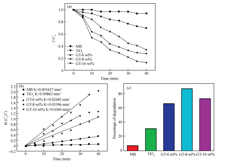 Key words: graphene(GR), tetrabutyl titanate(TBT), GR-TiO2 nanocomposites, methylene blue, photocatalysis
