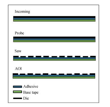 Abstract: A big yield drop has been observed during the automatic inspection (AOI) after the saw stage. A step by step AOI inspection check and defect review is made to see which step made a big yield drop and which kind of defect contributed most to the yield drop. Scanning electron microscope (SEM) and energy dispersive spectrometer (EDS) analysis showed the shape and chemical element of the particle. From the EDS result, particles can be separated into two categories. One was the inorganic related materials, mainly including silicon (Si) element, which came from the saw stage. A design of experiment (DOE) is used to find some reasonable saw relative parameter and optimize it in order to remove the particle from the saw stage. But the quantity of this kind of particle was small. Yield was only improved by less than 5%. Our main effort was to remove another kind of particle which was organic related materials, mainly including carbon (C) and oxygen (O) element. This kind of particle was from tape residue. In order to remove the tape residual, one step was added before the saw stage. Almost all of the tape residual was removed. Finally, the final yield was improved by more than 15%.
