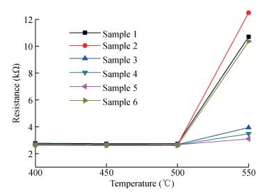Table 1. The resistance of polysilicon resistors connected by Ti/Pt/Au system that have undergone different temperature and time