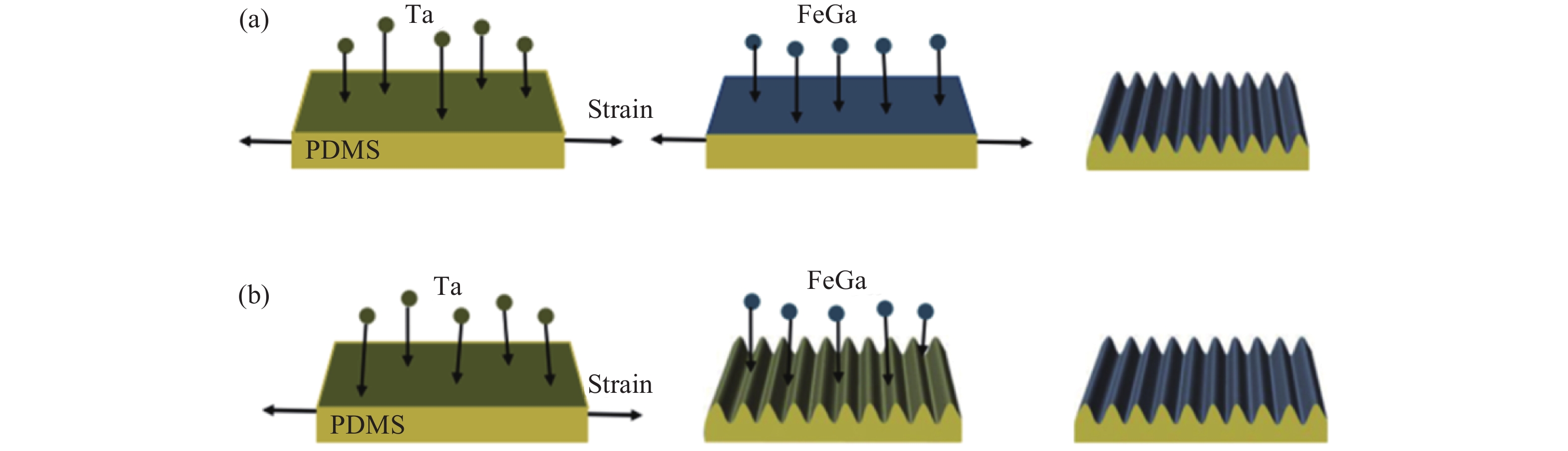 Zhang S, Zhan Q, Yu Y, et al. Surface morphology and magnetic property of wrinkled FeGa thin films fabricated on elastic polydimethylsiloxane. Appl Phys Lett, 2016, 108(10): 102409 doi: 10.1063/1.4943943