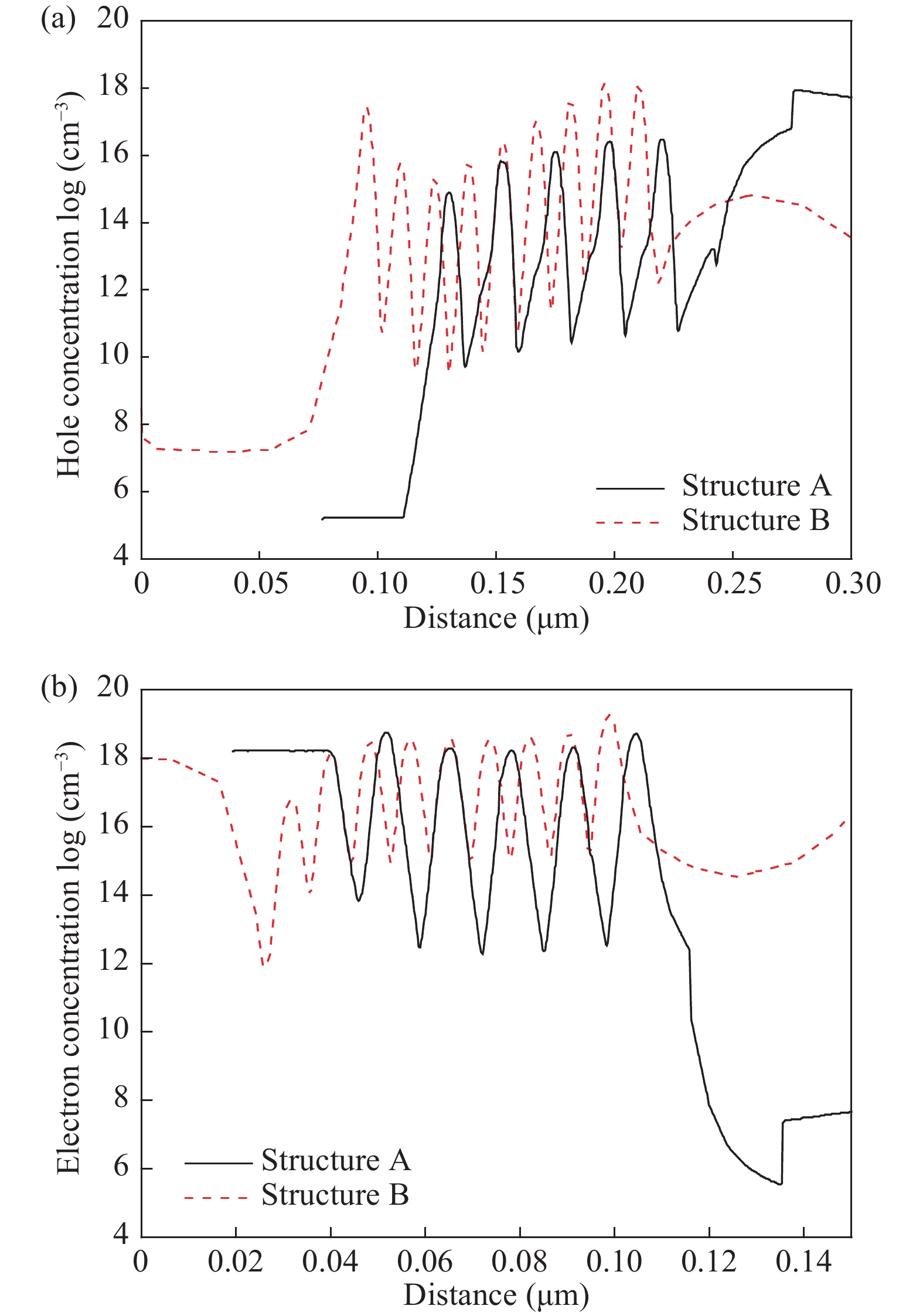 Abstract: In this study, the effect of double superlattices on GaN-based blue light-emitting diodes (LEDs) is analyzed numerically. One of the superlattices is composed of InGaN/GaN, which is designed before the multiple quantum wells (MQWs). The other one is AlInGaN/AlGaN, which is inserted between the last QB (quantum barriers) and p-GaN. The crucial characteristics of double superlattices LEDs structure, including the energy band diagrams, carrier concentrations in the active region, light output power, internal quantum efficiency, respectively, were analyzed in detail. The simulation results suggest that compared with the conventional AlGaN electron-blocking layer (EBL) LED, the LED with double superlattices has better performance due to the enhancement of electron confinement and the increase of hole injection. The double superlattices can make it easier for the carriers tunneling to the MQWs, especially for the holes. Furthermore, the LED with the double superlattices can effectively suppress the electron overflow out of multiple quantum wells simultaneously. From the result, we argue that output power is enhanced dramatically, and the efficiency droop is substantially mitigated when the double superlattices are used.
