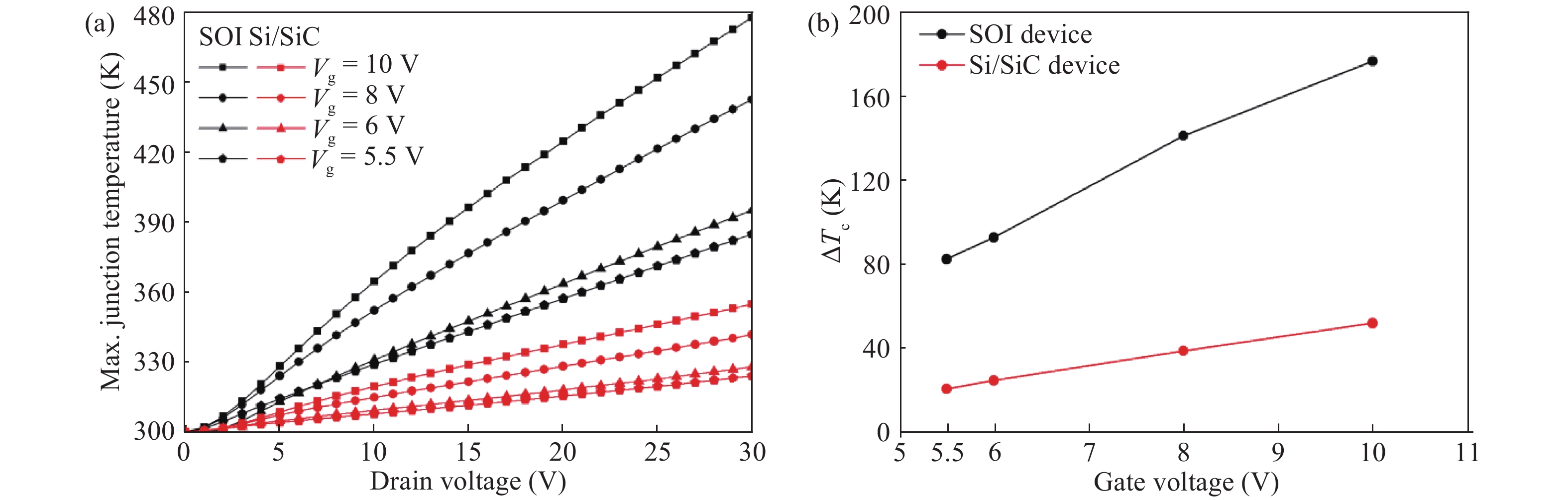 Abstract: The main content revolves round the on-state characteristics of the variation of a lateral width (VLW) LDMOS device. A three-dimensional numerical analysis is performed to investigate the specific on-resistance of the VLW LDMOS device, the simulation results are in good agreement with the analytical calculation results combined with device dimensions. This provides a theoretical basis for the design of devices in the future. Then the self-heating effect of the VLW structure with a silicon-on-oxide (SOI) substrate is compared with that of a silicon carbide (SiC) substrate by 3D thermoelectric simulation. The electrical characteristic and temperature distribution indicate that taking into account the SiC as the substrate can mitigate the self- heating penalty effectively, alleviating the self heating effect and improving reliability.