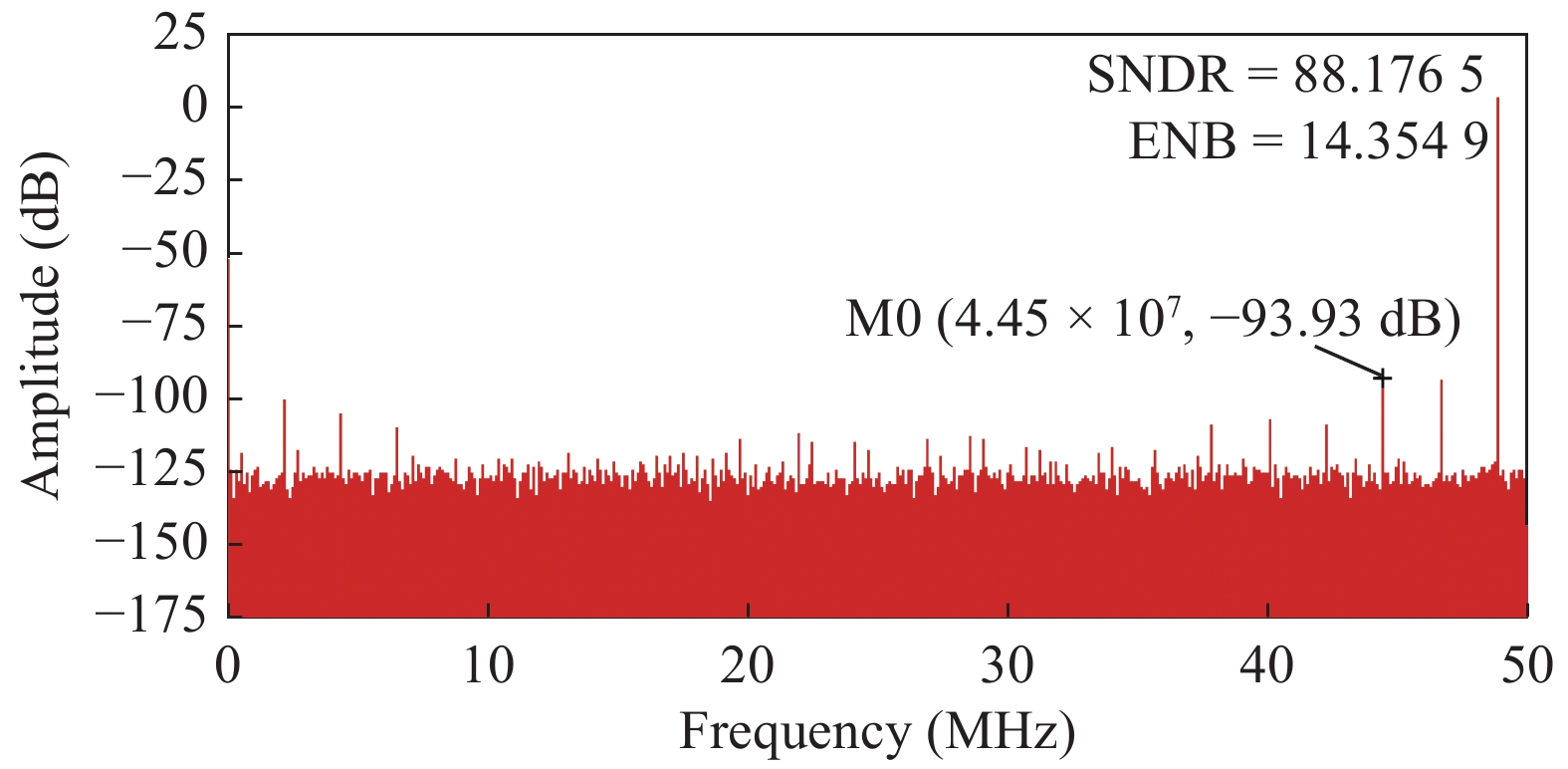 Fig. 8.  (Color?online) The S/H output spectrum with a 48.9 MHz analog input.