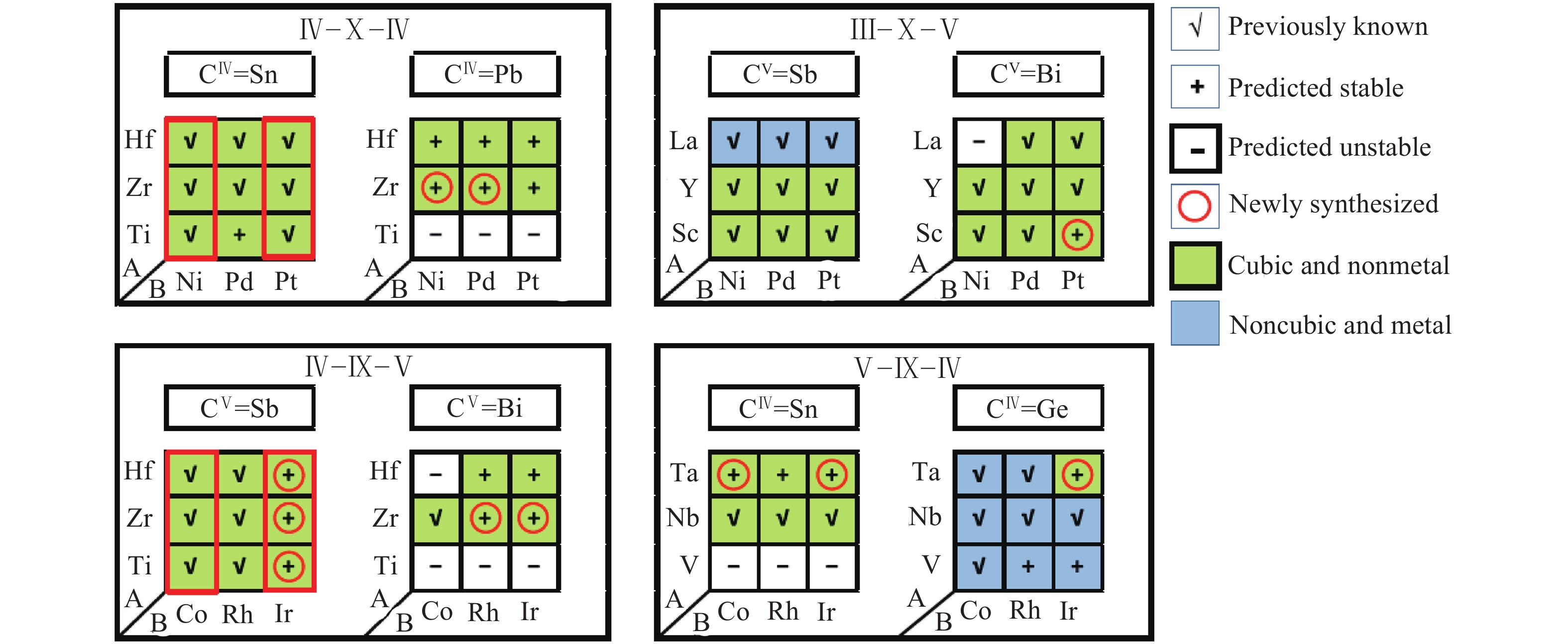 Zhang X, Yu L, Zakutayev A, et al. Sorting stable versus unstable hypothetical compounds: the case of multi-functional ABX half-Heusler filled tetrahedral structures. Adv Funct Mater, 2012, 22: 1425 doi: 10.1002/adfm.v22.7
