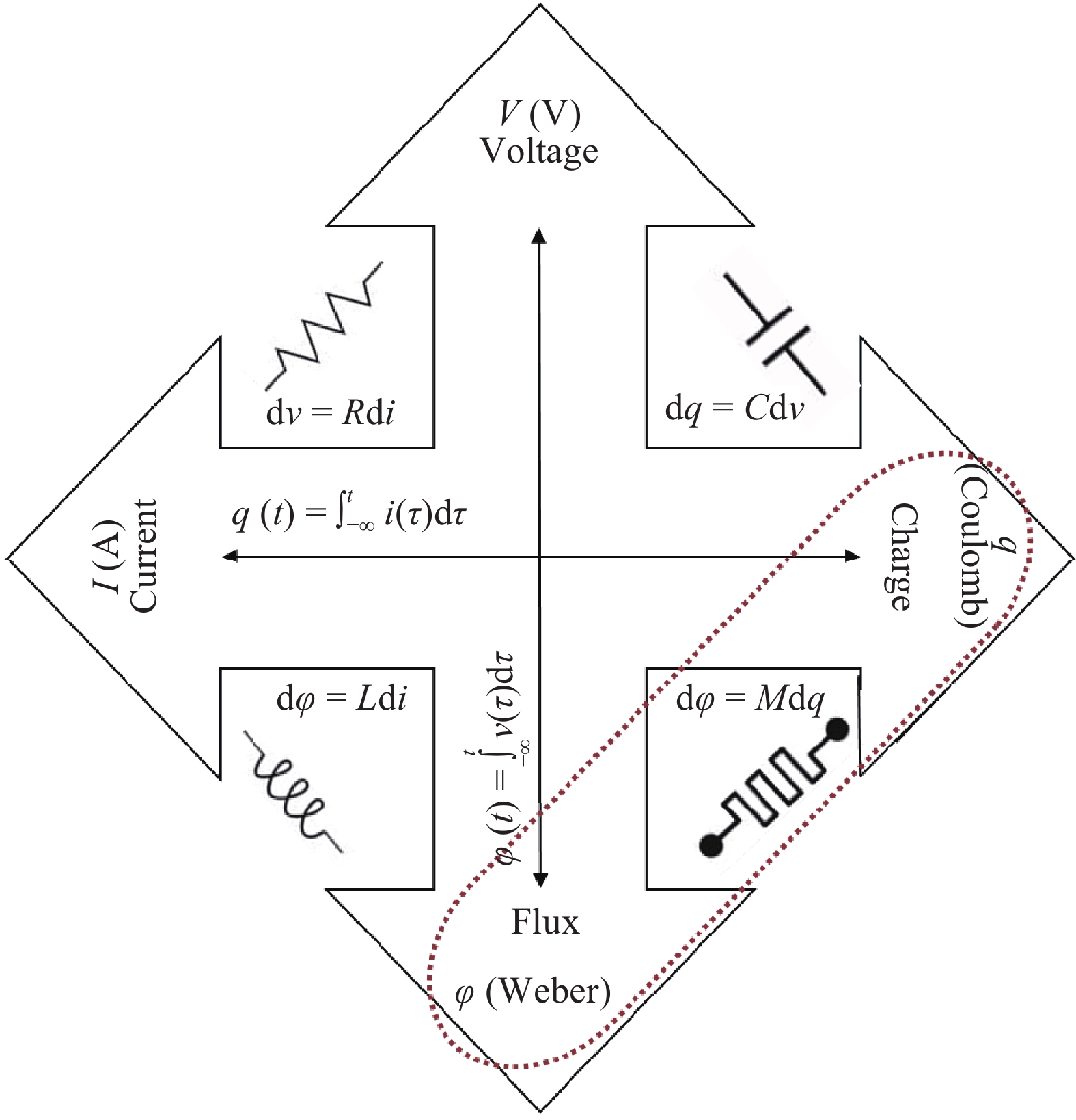 | 4 | Memristor | Leon Chua | 1971 | Magnetic flux (?) and charge (q) | dφ = Mdq |