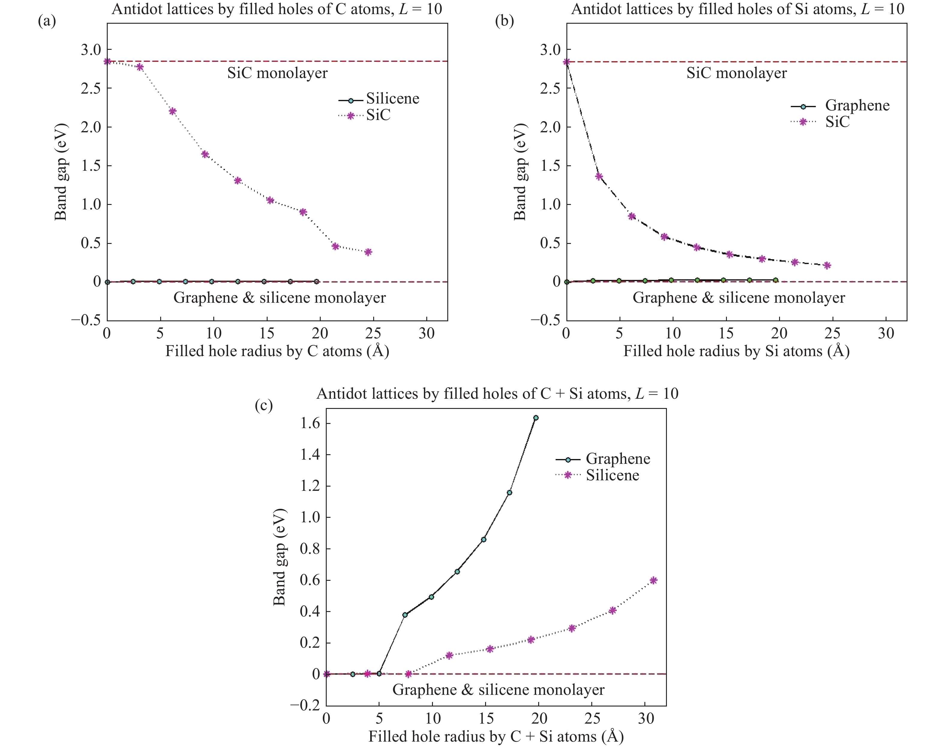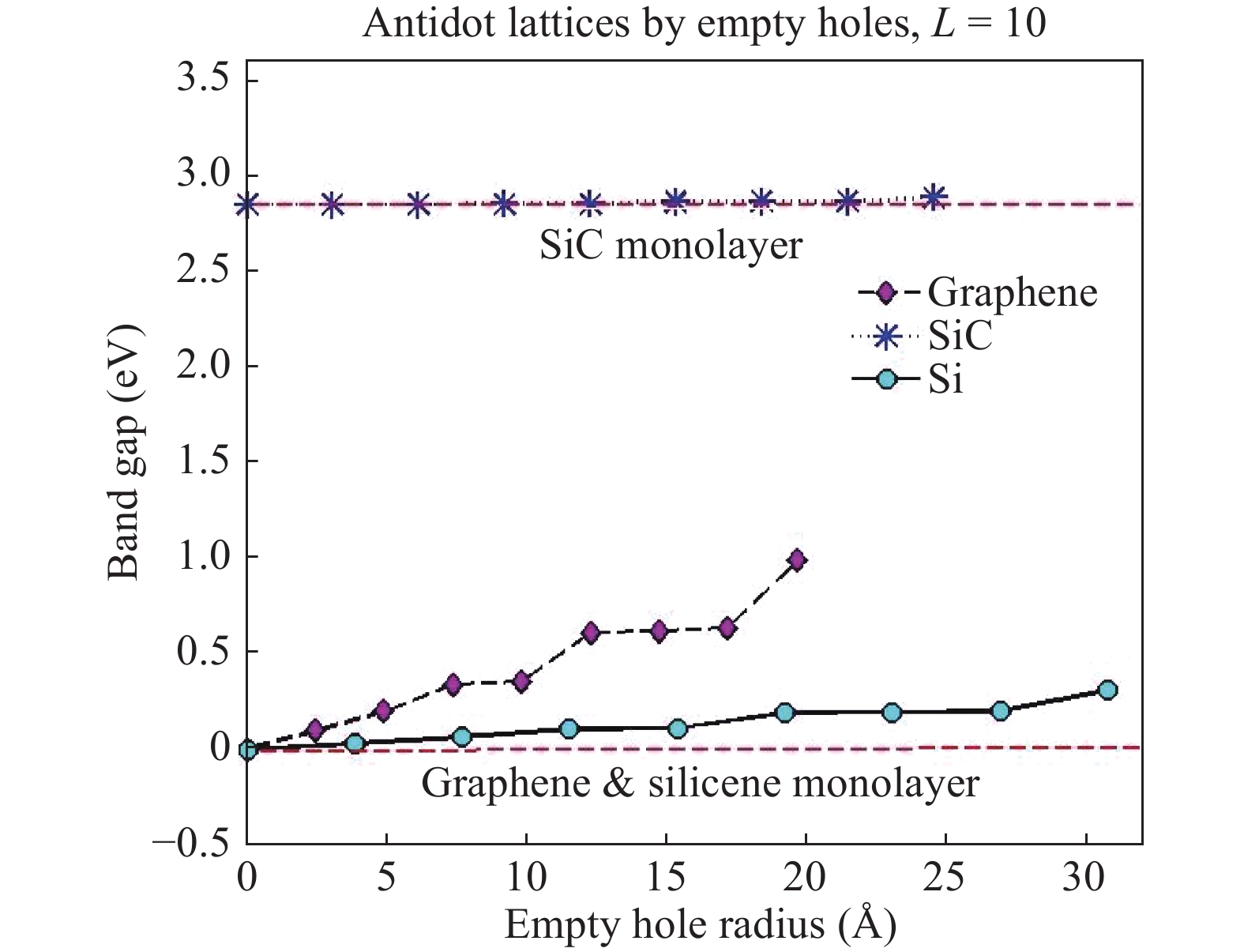 Zhang A, Teoh H F, Dai Z, et al. Band gap engineering in graphene and hexagonal BN antidot lattices: A first principles study. Appl Phys Lett, 2011, 98(2): 023105 doi: 10.1063/1.3536517