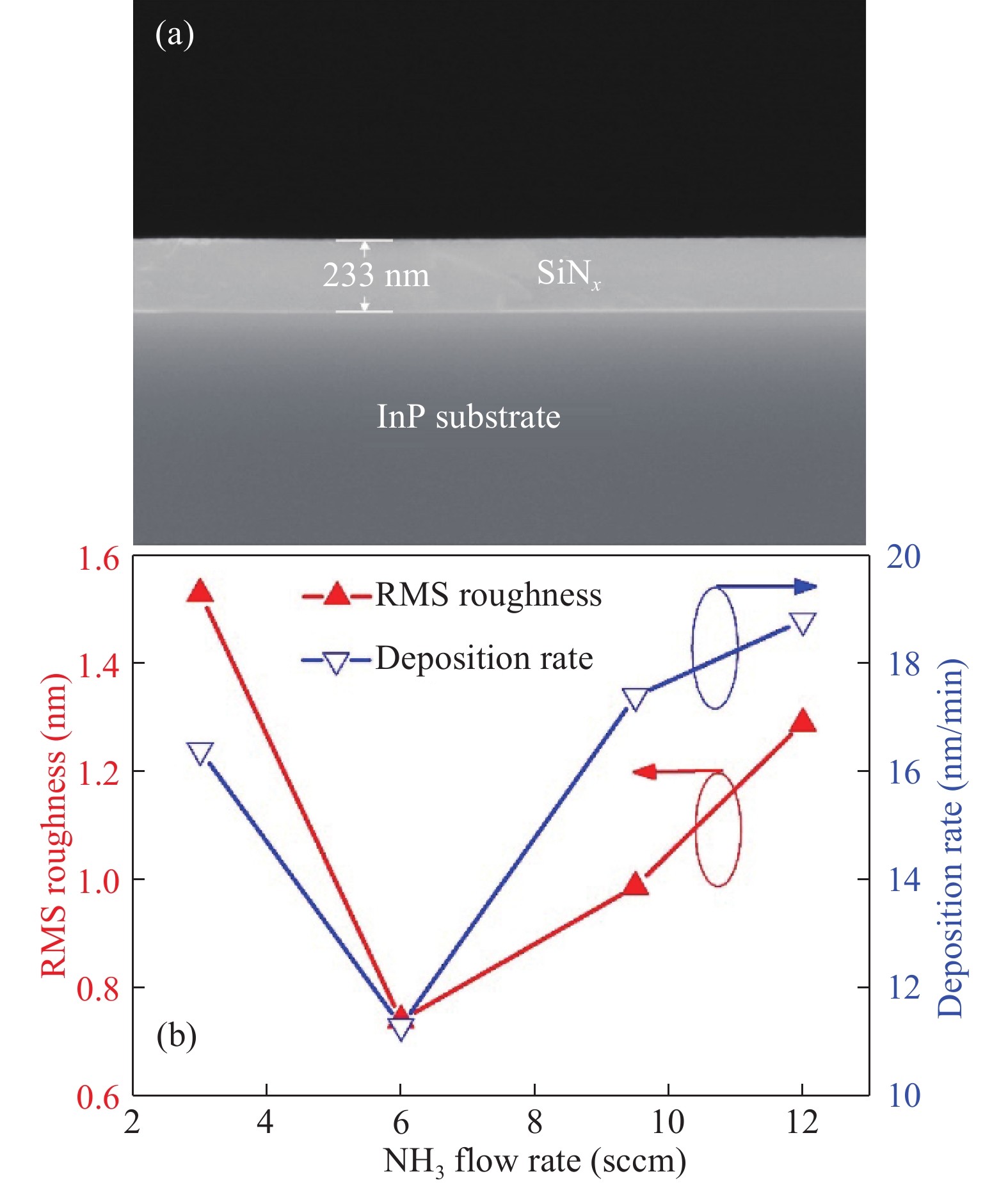 Table 1. The etching rate and Si/N ratio of SiNx samples with different NH3 flow rates.