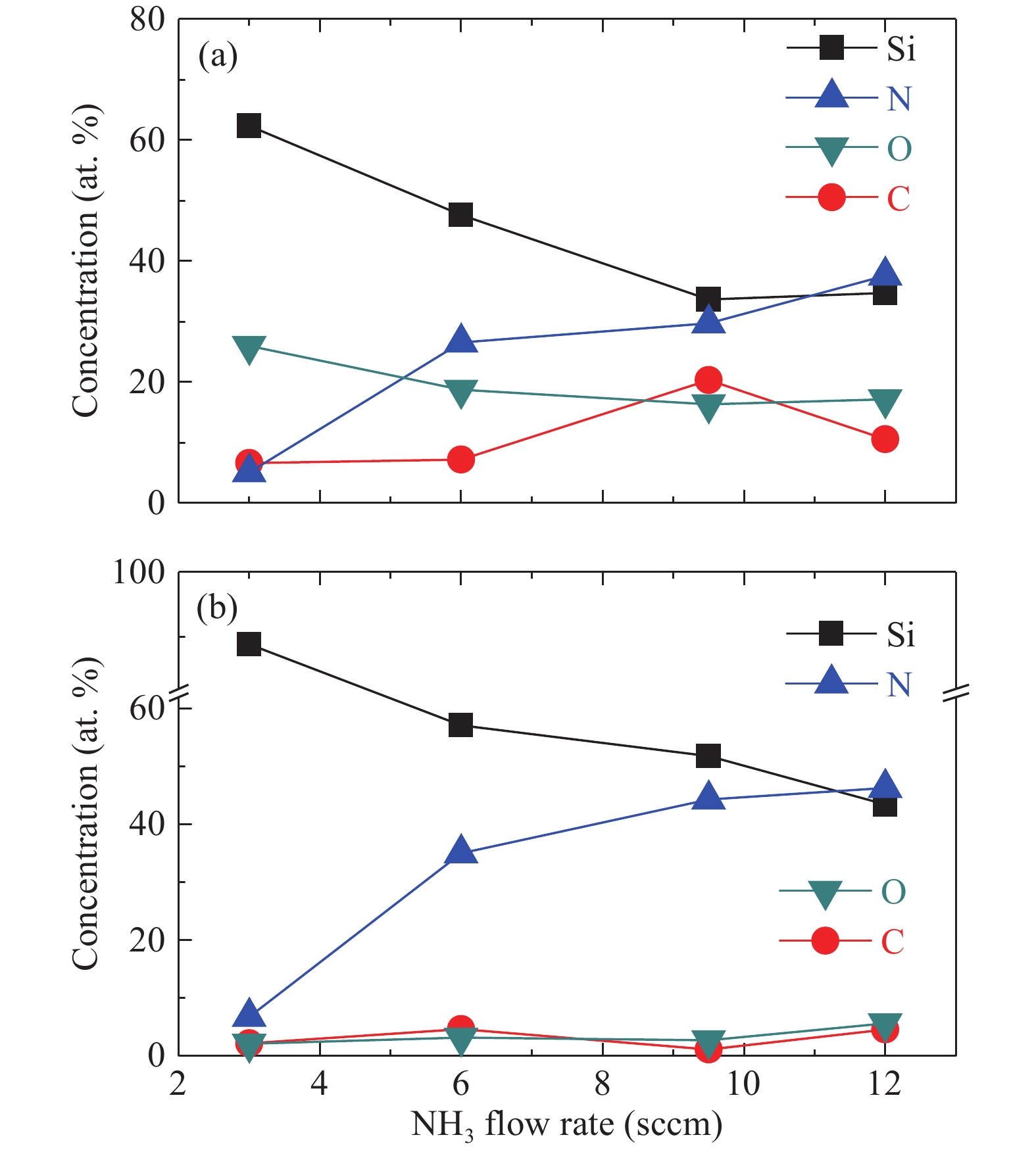 | Sample No. | NH3 flow rate (sccm) | BOE etching rate (nm/min) | Si/N ratio |