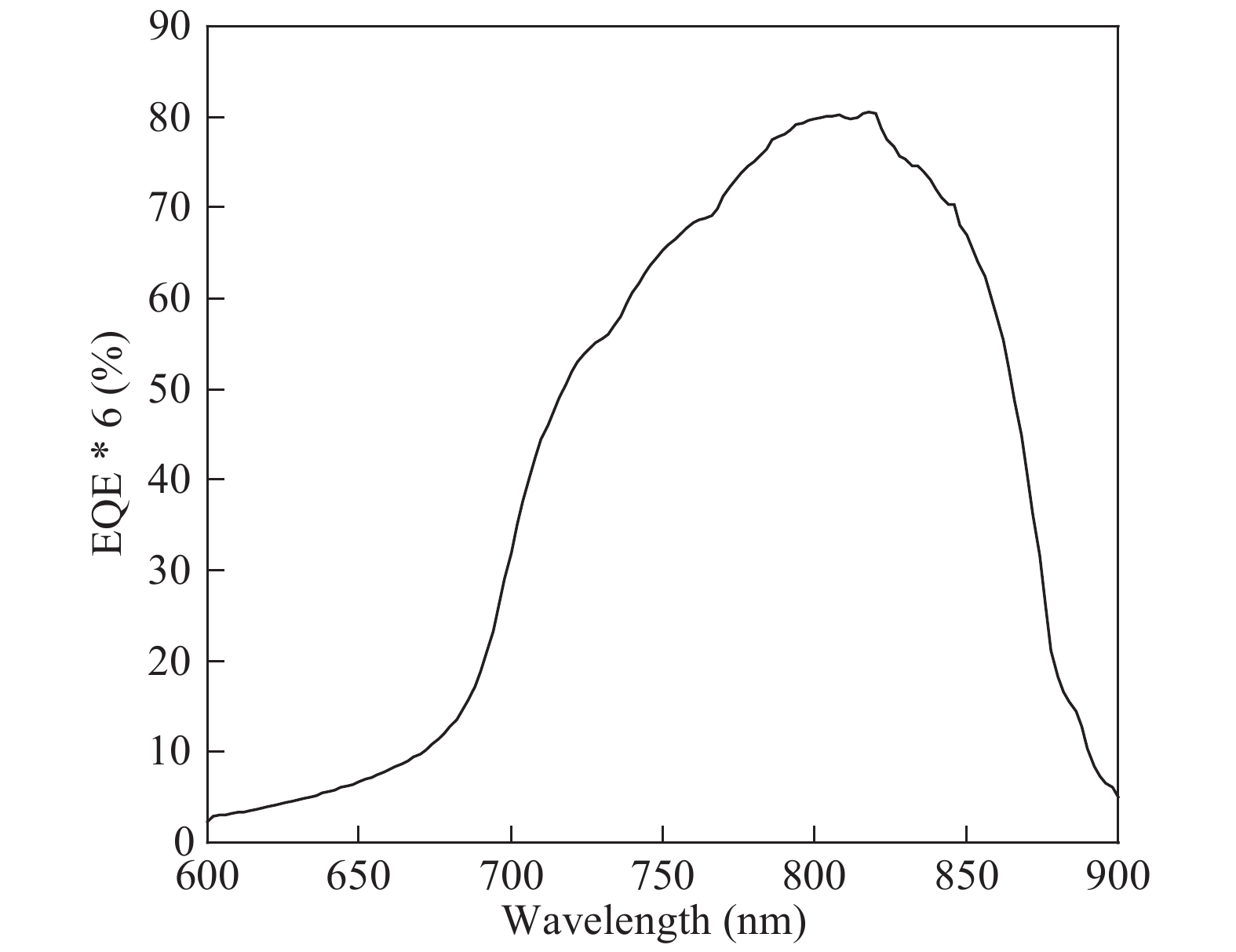 Fig. 5.  Measured EQE of a six-junction GaAs LPC.