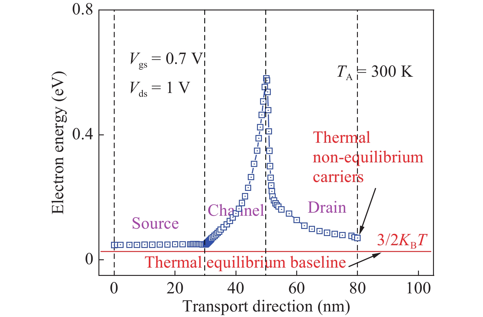 Mohamed M, Aksamija Z, Vitale W, et al. A conjoined electron and thermal transport study of thermal degradation induced during normal operation of multigate transistors. IEEE Trans Electron Devices, 2014, 61(4): 976 doi: 10.1109/TED.2014.2306422