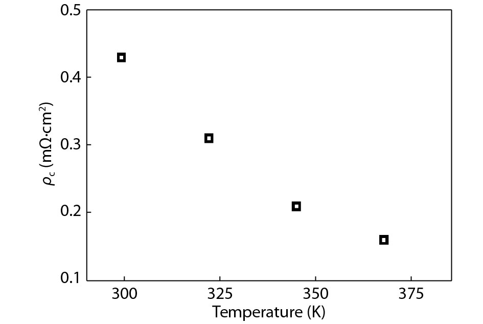 Abstract: The carrier transport mechanism of Mg/Au ohmic contact for lightly doped β-Ga2O3 is investigated. An excellent ohmic contact has been achieved when the sample was annealed at 400 °C and the specific contact resistance is 4.3 × 10?4 Ω·cm2. For the annealed sample, the temperature dependence of specific contact resistance is studied in the range from 300 to 375 K. The specific contact resistance is decreased from 4.3 × 10?4 to 1.59 × 10?4 Ω·cm2 with an increase of test temperature. As combination with the judge of E00, the basic mechanism of current transport is dominant by thermionic emission theory. The effective barrier height between Mg/Au and β-Ga2O3 is evaluated to be 0.1 eV for annealed sample by fitting experimental data with thermionic emission model.