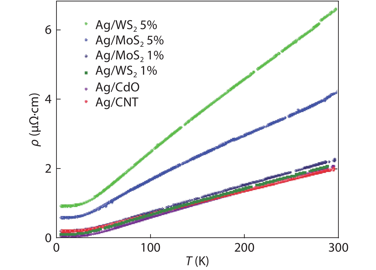 Jacimovic J, Felberbaum L. Electro-mechanical properties and welding characteristics of Ag/MoS2, Ag/WS2, Ag/CNTs and Ag/CdO materials for high-DC current contact applications. The 27th International Conference on Electrical Contacts, 2014, 132