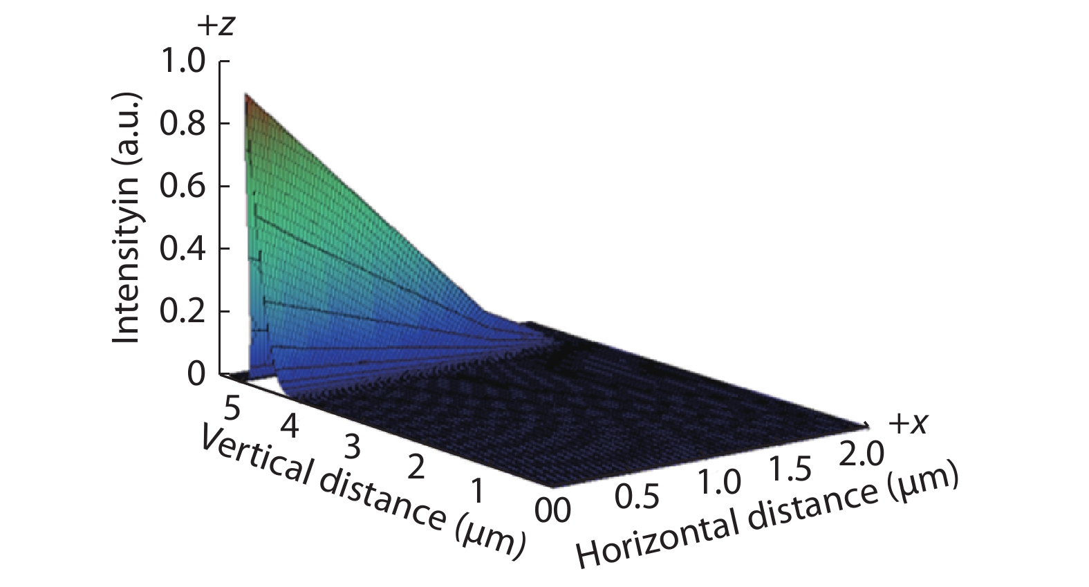Fig. 1.  (Color online) The optical intensity confined within the active region for optical confining factor (OCF) of 40.4%.