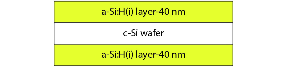 Fig. 1.  (Color online) Symmetrical a-Si:H(i)/c-Si/a-Si:H(i) structure for lifetime test structure.