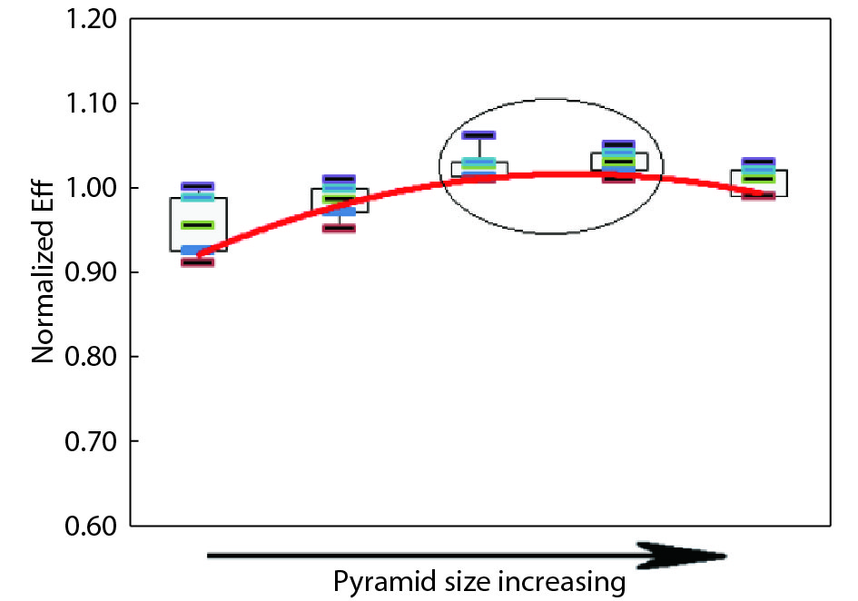 Fig. 13.  (Color online) The influence of pyramid size on solar cell effciency.