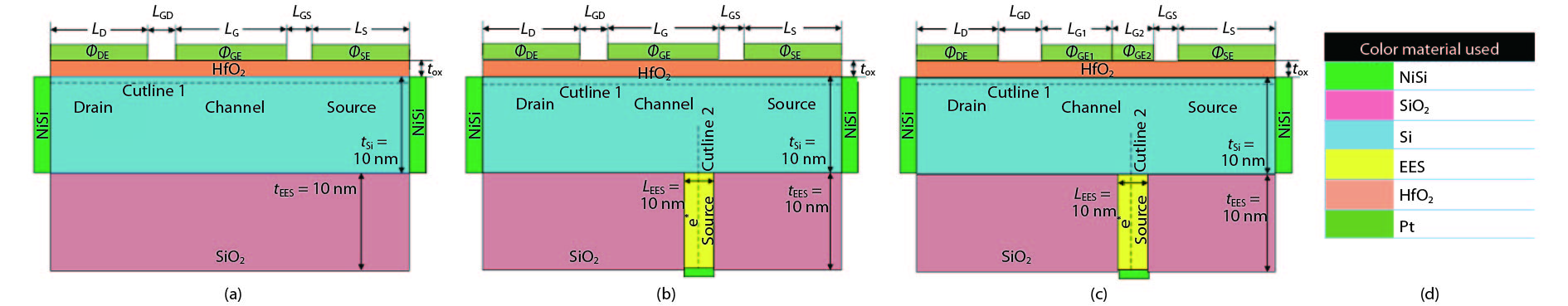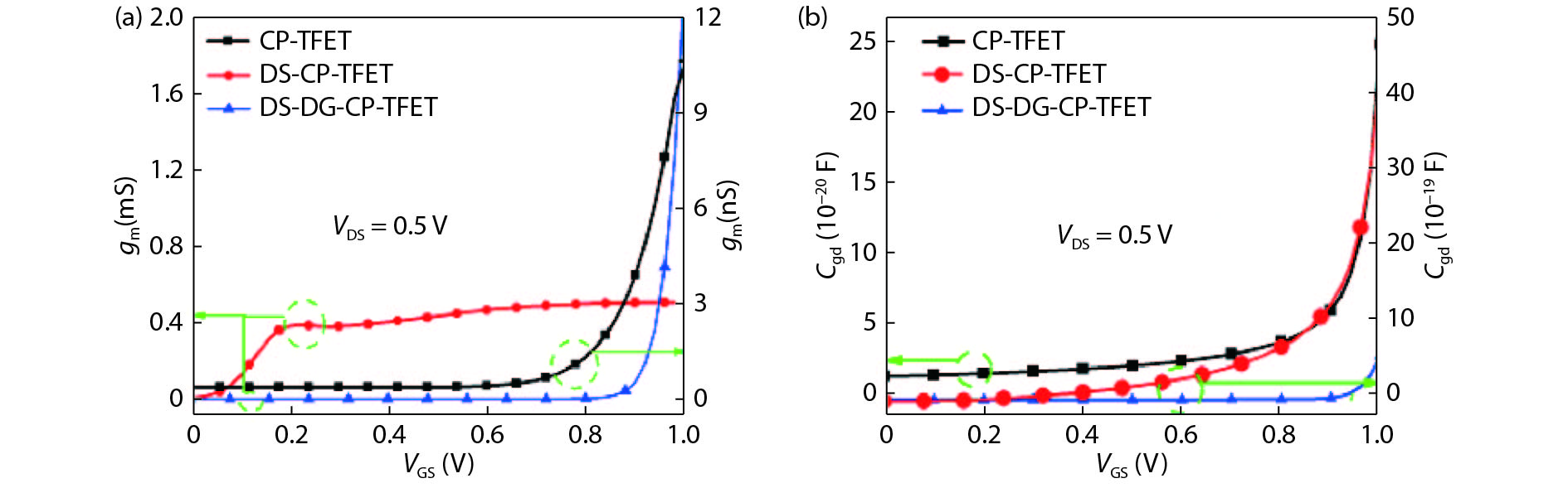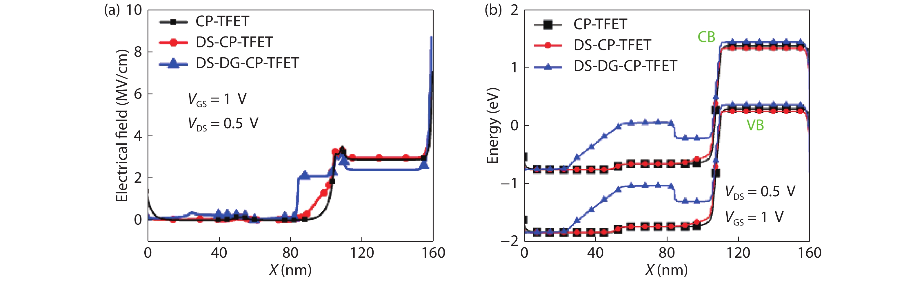 | Parameters name/Unit | CP-TFET | DS-CP-TFET | DM-DG-CP-TFET |