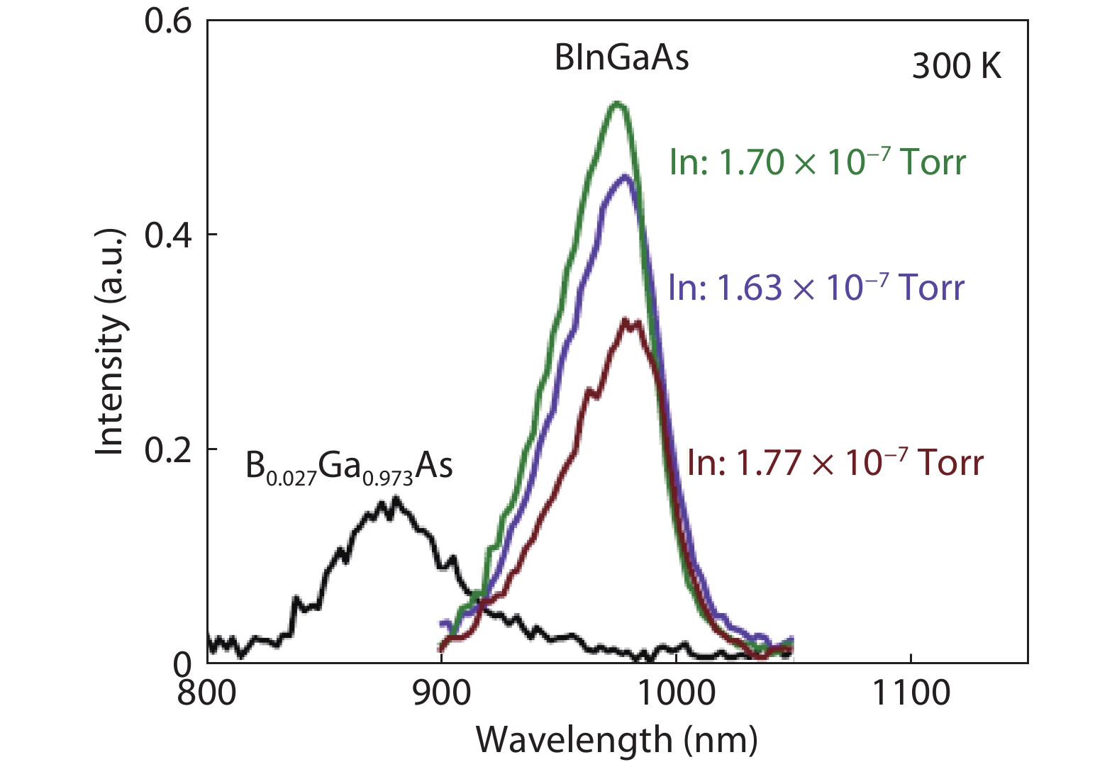 Rodriguez P, Auvray L, Dumont H, et al. Growth and characterization of BGaAs and BInGaAs epilayers on GaAs by MOVPE. J Cryst Growth, 2007, 298, 81 doi: 10.1016/j.jcrysgro.2006.10.118