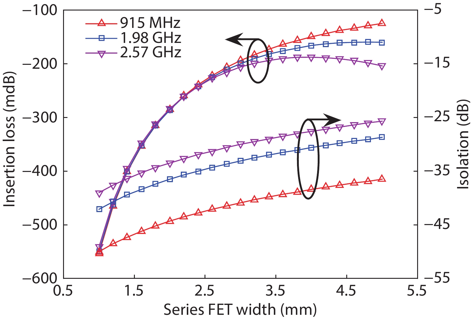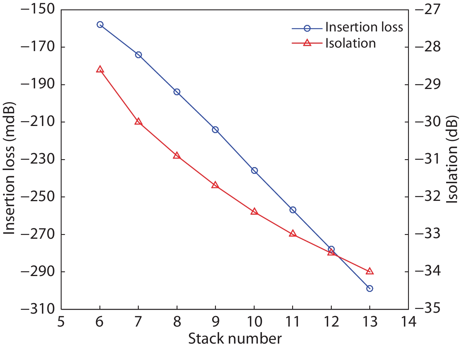 | Insertion loss (dB) | 0.49/0.70 | 0.30/0.37 | 0.25/0.30 | 0.24/0.34 | 0.27/0.33 |