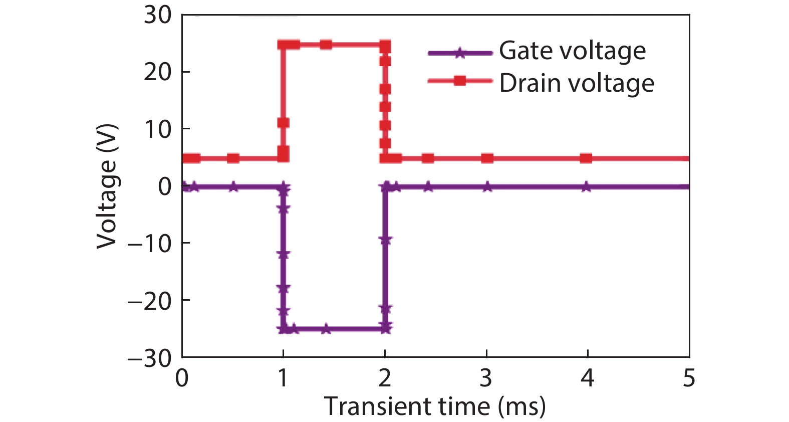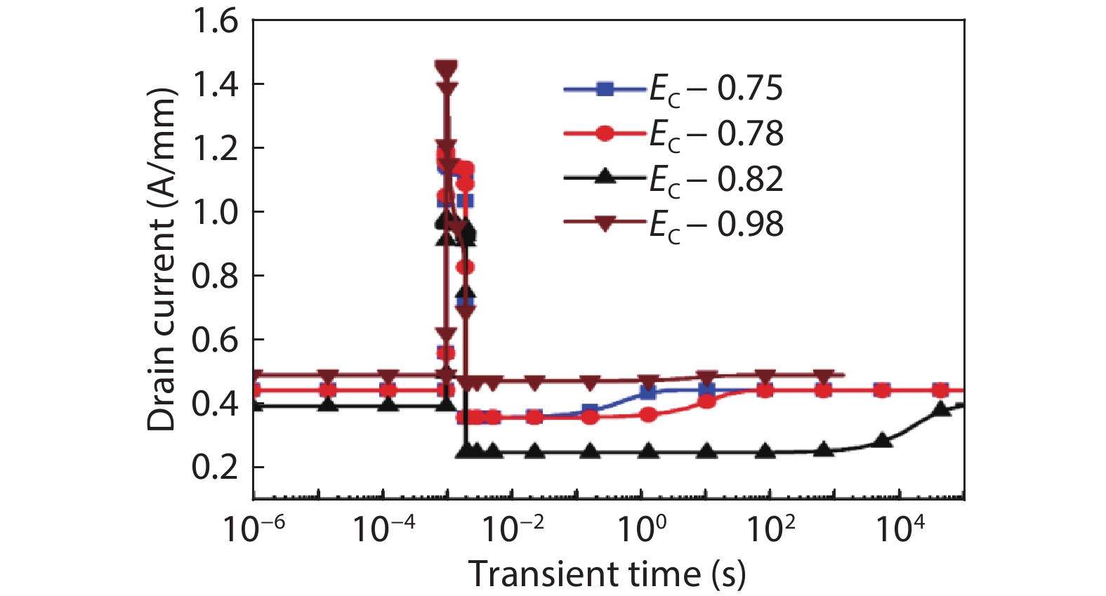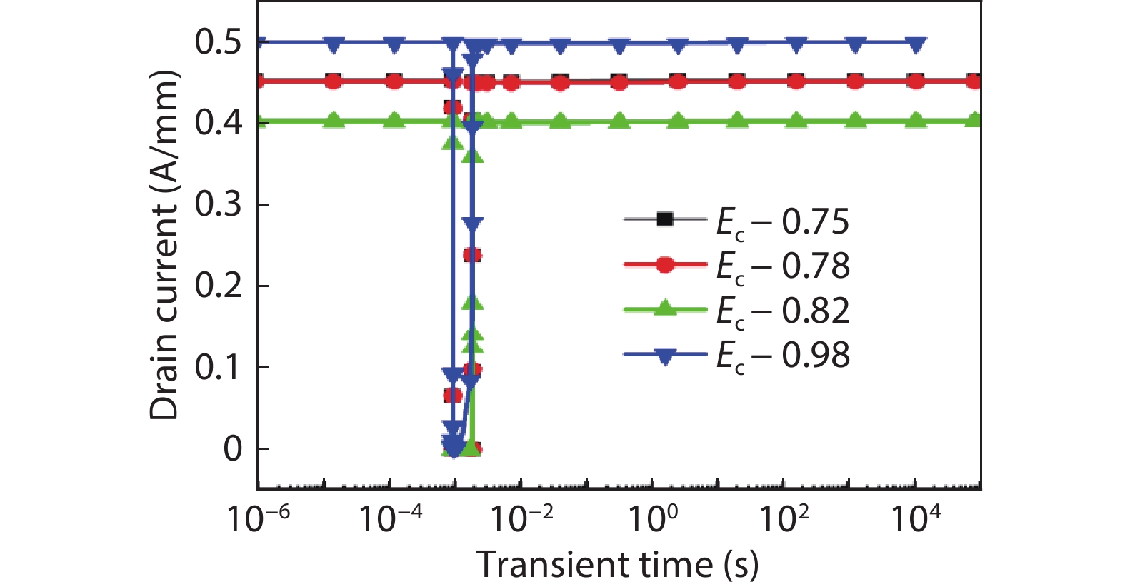 Abstract: In this paper, drain current transient characteristics of β-Ga2O3 high electron mobility transistor (HEMT) are studied to access current collapse and recovery time due to dynamic population and de-population of deep level traps and interface traps. An approximately 10 min, and 1 h of recovery time to steady-state drain current value is measured under 1 ms of stress on the gate and drain electrodes due to iron (Fe)–doped β-Ga2O3 substrate and germanium (Ge)–doped β-Ga2O3 epitaxial layer respectively. On-state current lag is more severe due to widely reported defect trap EC – 0.82 eV over EC – 0.78 eV, ?0.75 eV present in Iron (Fe)-doped β-Ga2O3 bulk crystals. A negligible amount of current degradation is observed in the latter case due to the trap level at EC – 0.98 eV. It is found that occupancy of ionized trap density varied mostly under the gate and gate–source area. This investigation of reversible current collapse phenomenon and assessment of recovery time in β-Ga2O3 HEMT is carried out through 2D device simulations using appropriate velocity and charge transport models. This work can further help in the proper characterization of β-Ga2O3 devices to understand temporary and permanent device degradation.