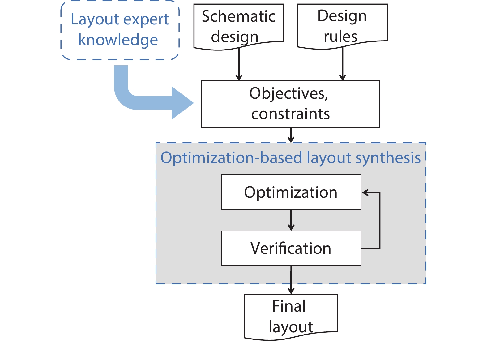 Eick M, Strasser M, Lu K, et al. Comprehensive generation of hierarchical placement rules for analog integrated circuits. IEEE TCAD, 2011, 30(2), 180 doi: 10.1109/TCAD.2010.2097172