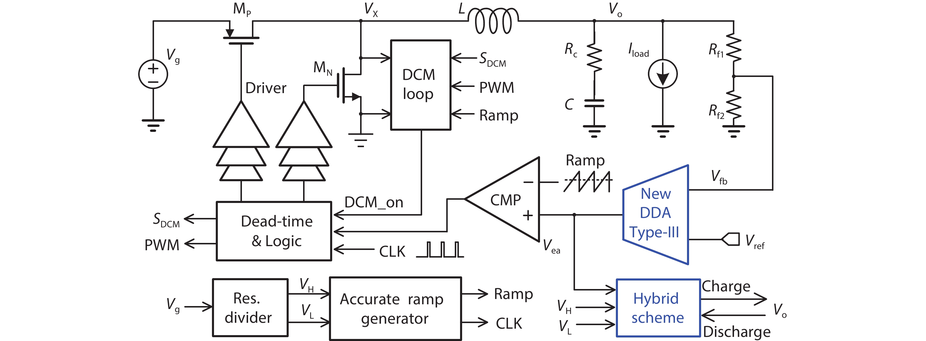 Key words: differential difference amplifier (DDA), Type-III compensator, fast transient responses, hybrid scheme, high switching frequency, overshoot/undershoot.