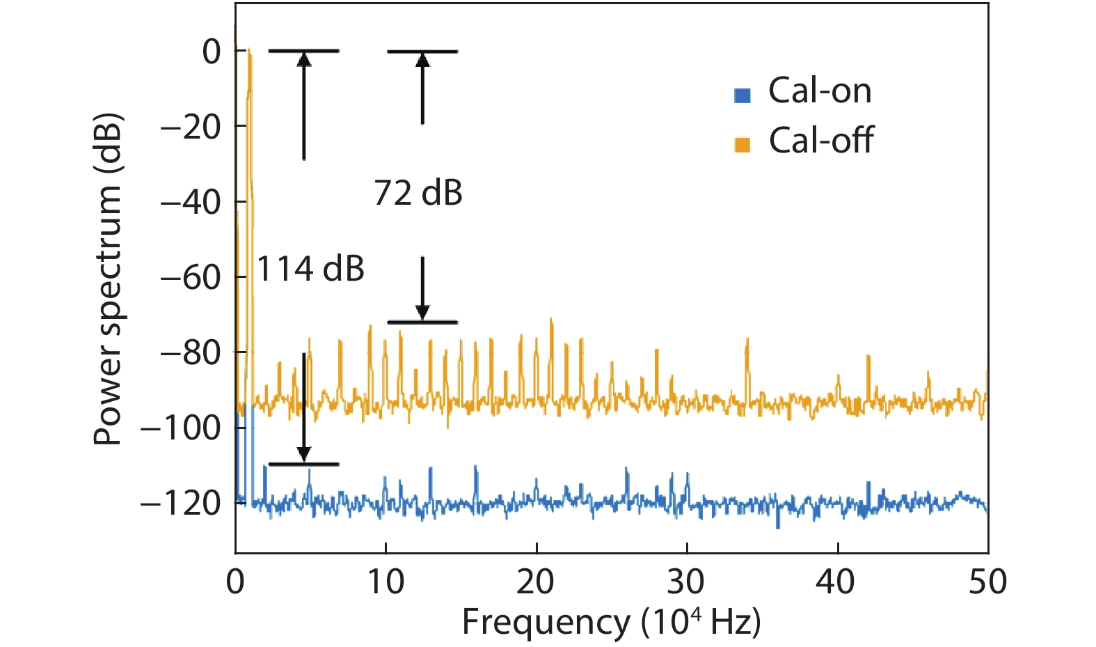 Fig. 17.  (Color online) Simulated results of noise floor with/without calibration.