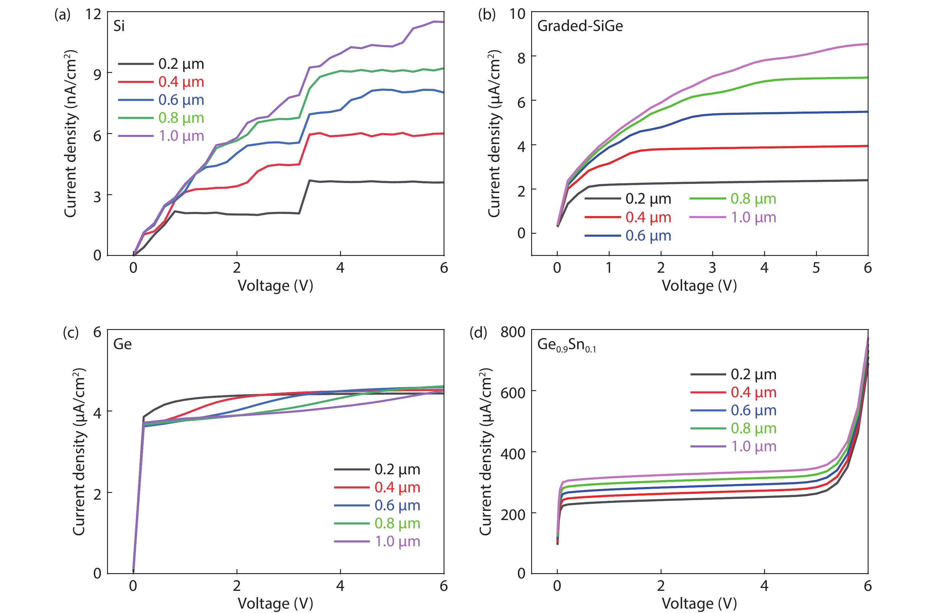 Mathews J, Roucka R, Xie J, et al. Extended performance GeSn/Si(100) p–i–n photodetectors for full spectral range telecommunication applications. Appl Phys Lett, 2009, 95, 133506 doi: 10.1063/1.3238327