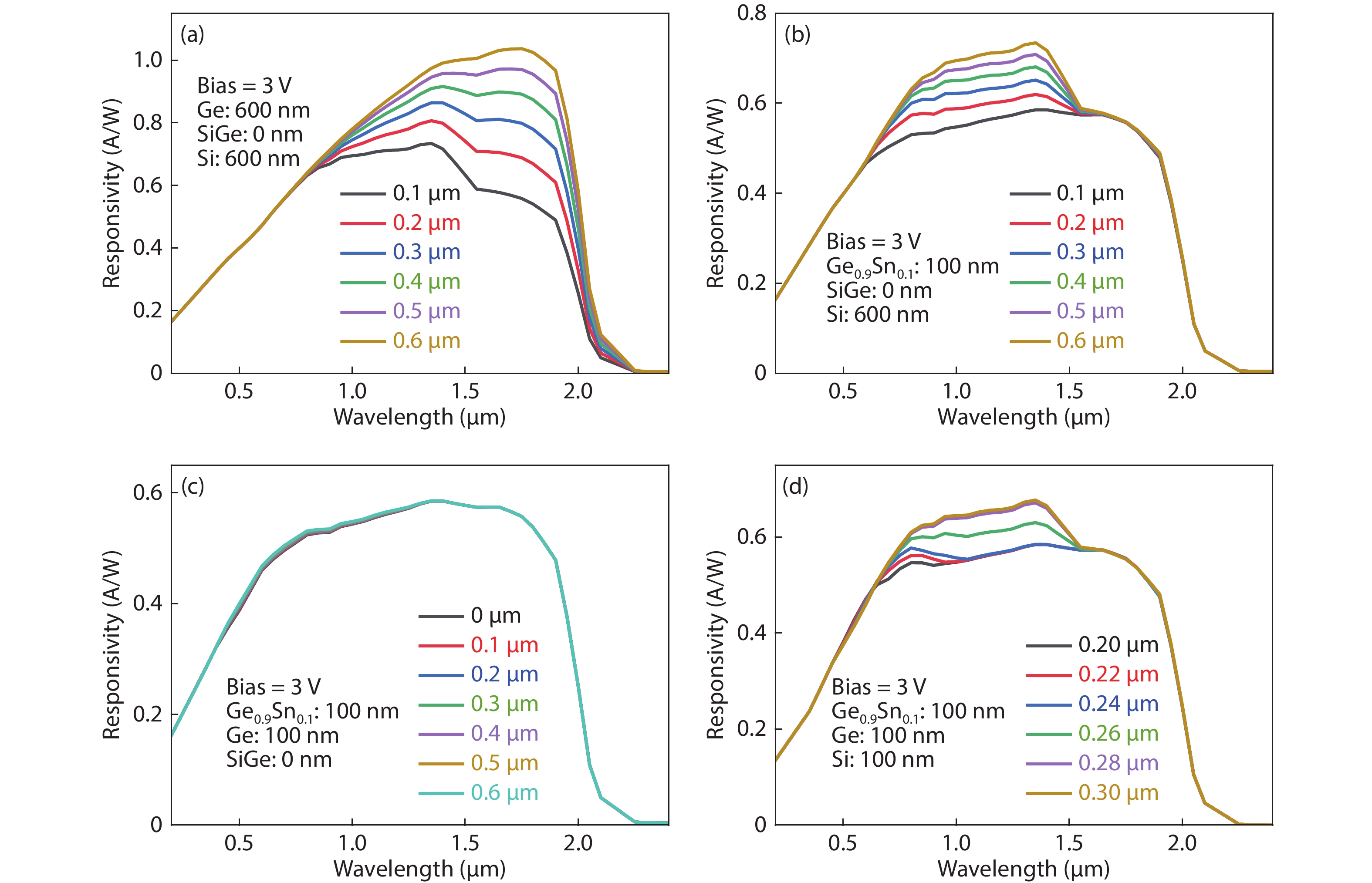 Key words: flat response, broad response, dark current density, graded-SiGe, Ge0.9Sn0.1