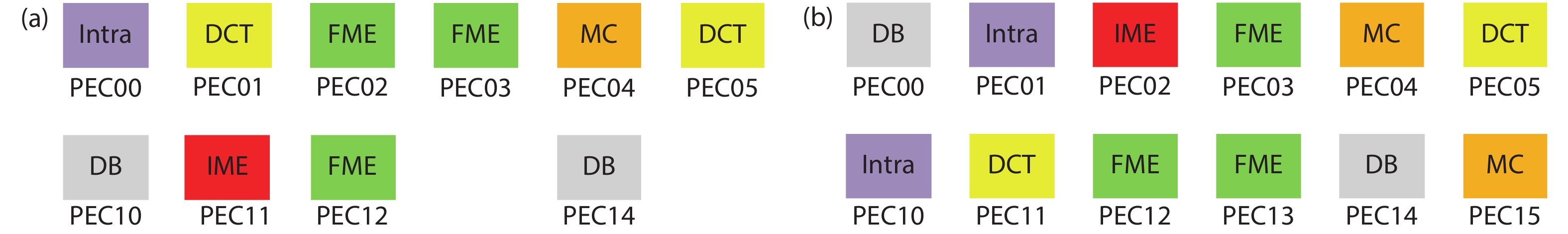 Fig. 5.  (Color online) Organizations of video processing system. (a) Original organization of video processing system. (b) Video processing system with higher parallelism.