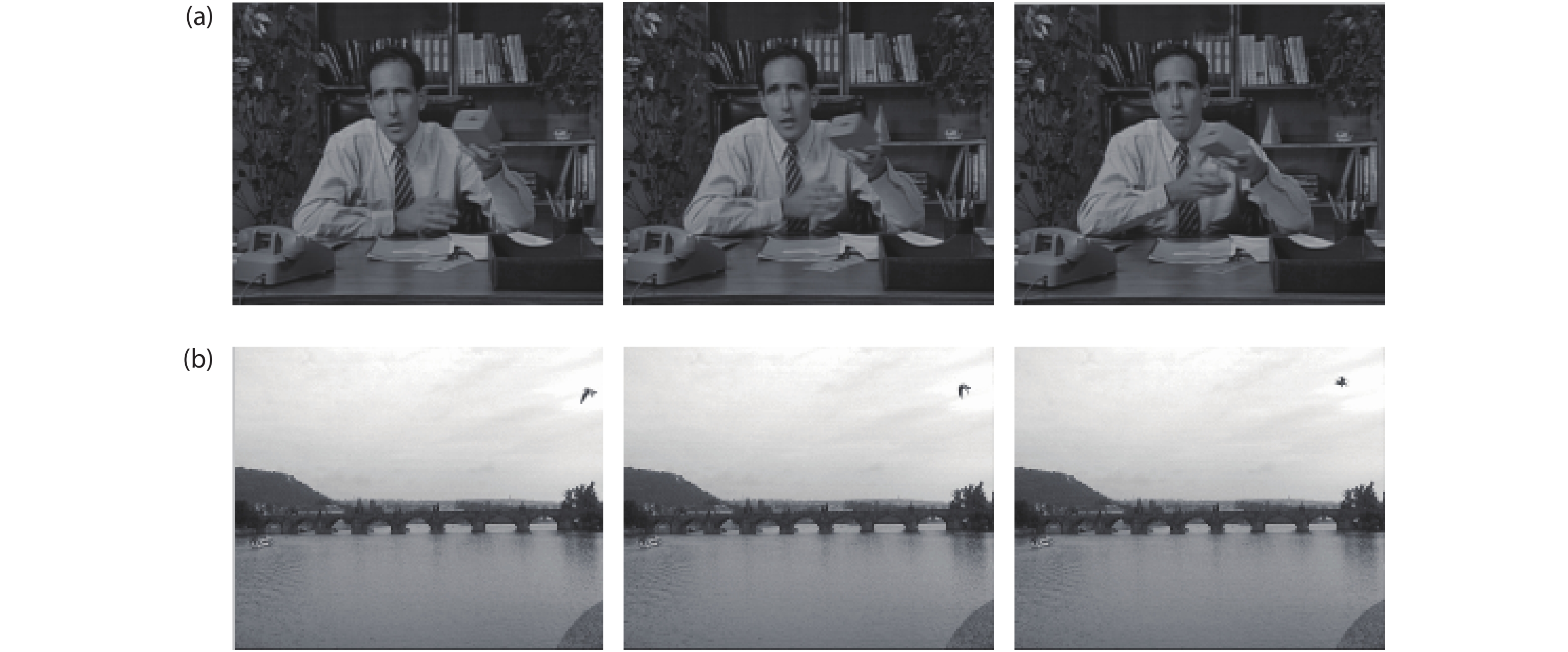 Fig. 6.  Results of different sequences in video processing. (a) Salesman. (b) Bridge.