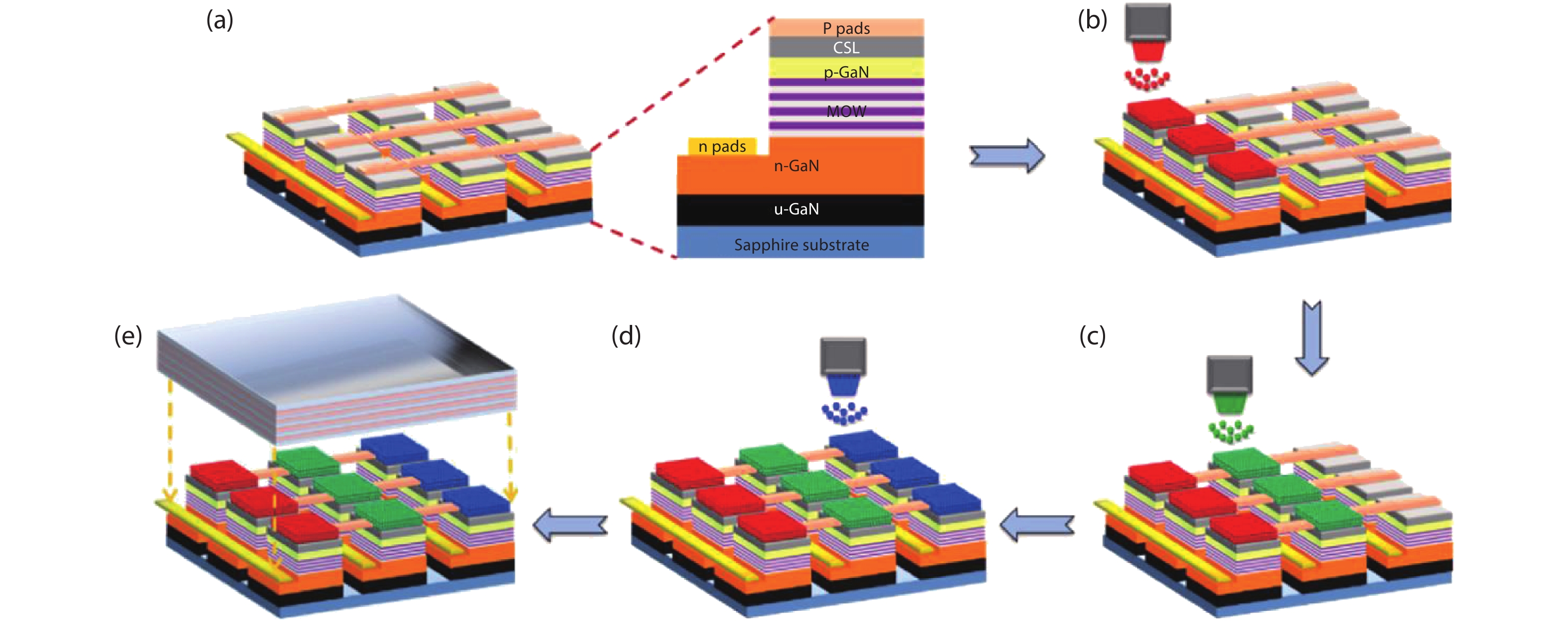 Key words: micro-LED, GaN, full-color display, transfer printing, color conversion