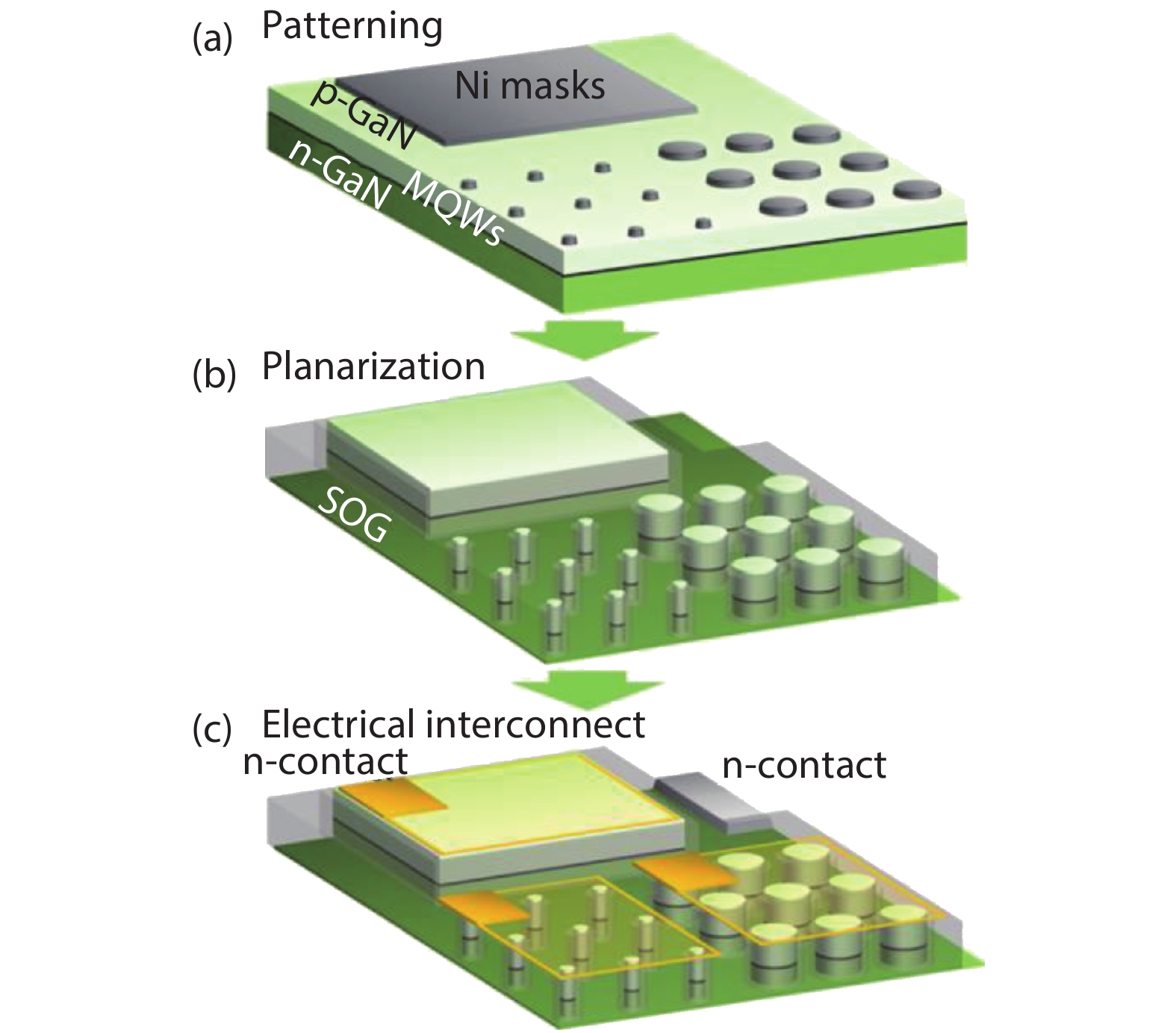 Chung K, Sui J, Demory B, et al. Color mixing from monolithically integrated InGaN-based light-emitting diodes by local strain engineering. Appl Phys Lett, 2017, 111, 041101 doi: 10.1063/1.4995561