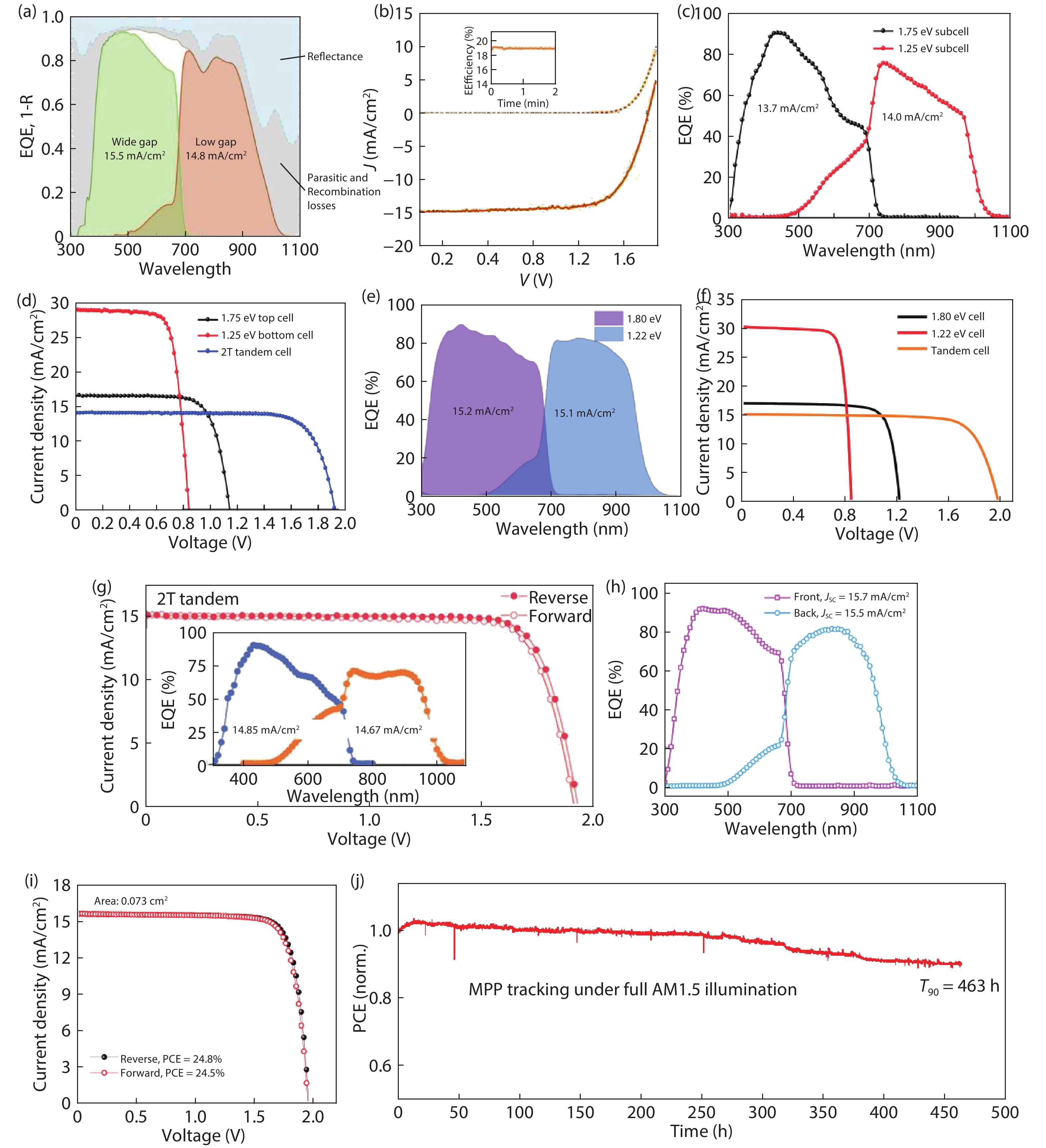 Table 1. Structure, bandgap matching, and performance parameters of all-perovskite tandem solar cells.