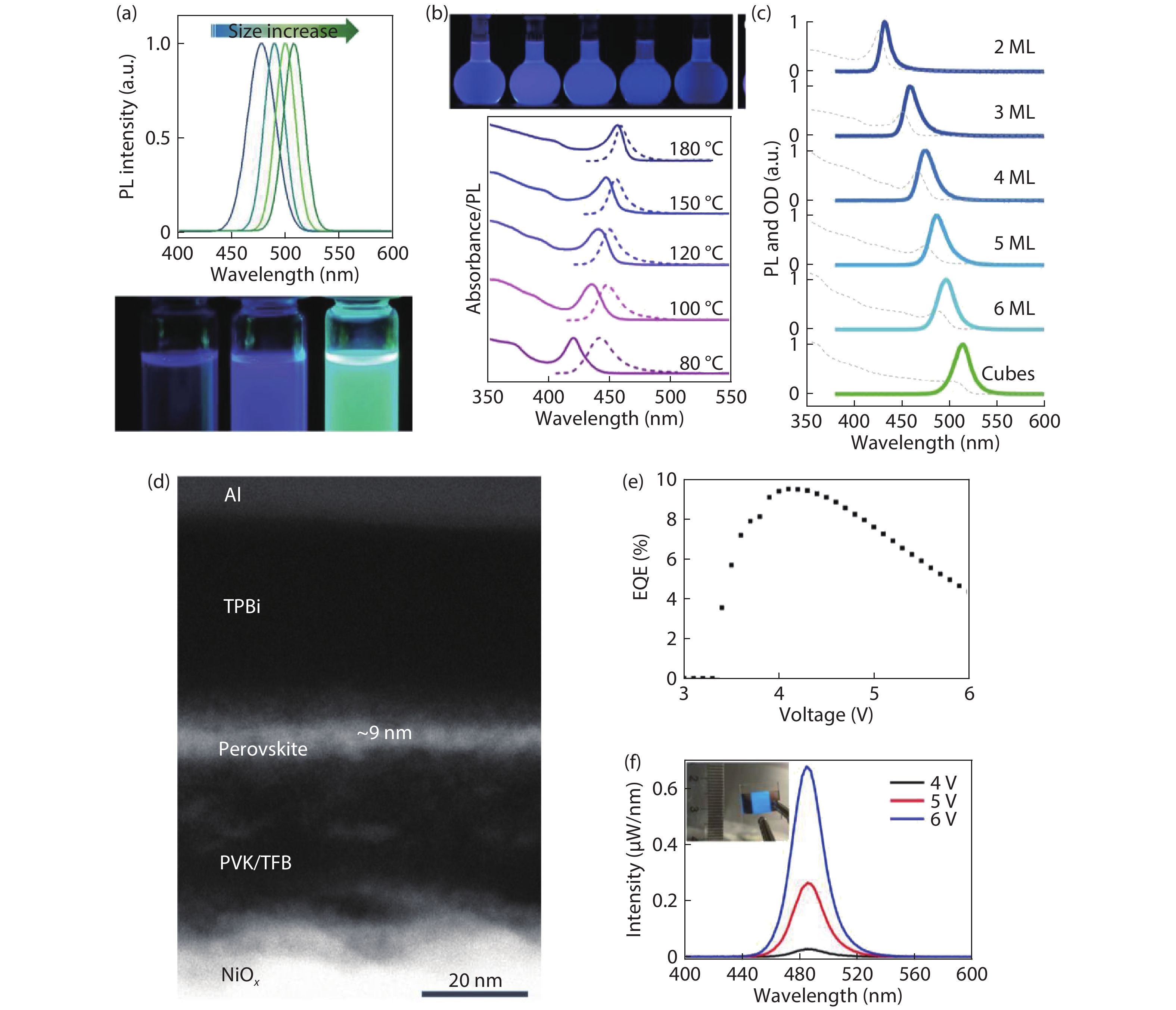 Liu Y, Cui J, Du K, et al. Efficient blue light-emitting diodes based on quantum-confined bromide perovskite nanostructures. Nat Photonics, 2019, 13, 760 doi: 10.1038/s41566-019-0505-4