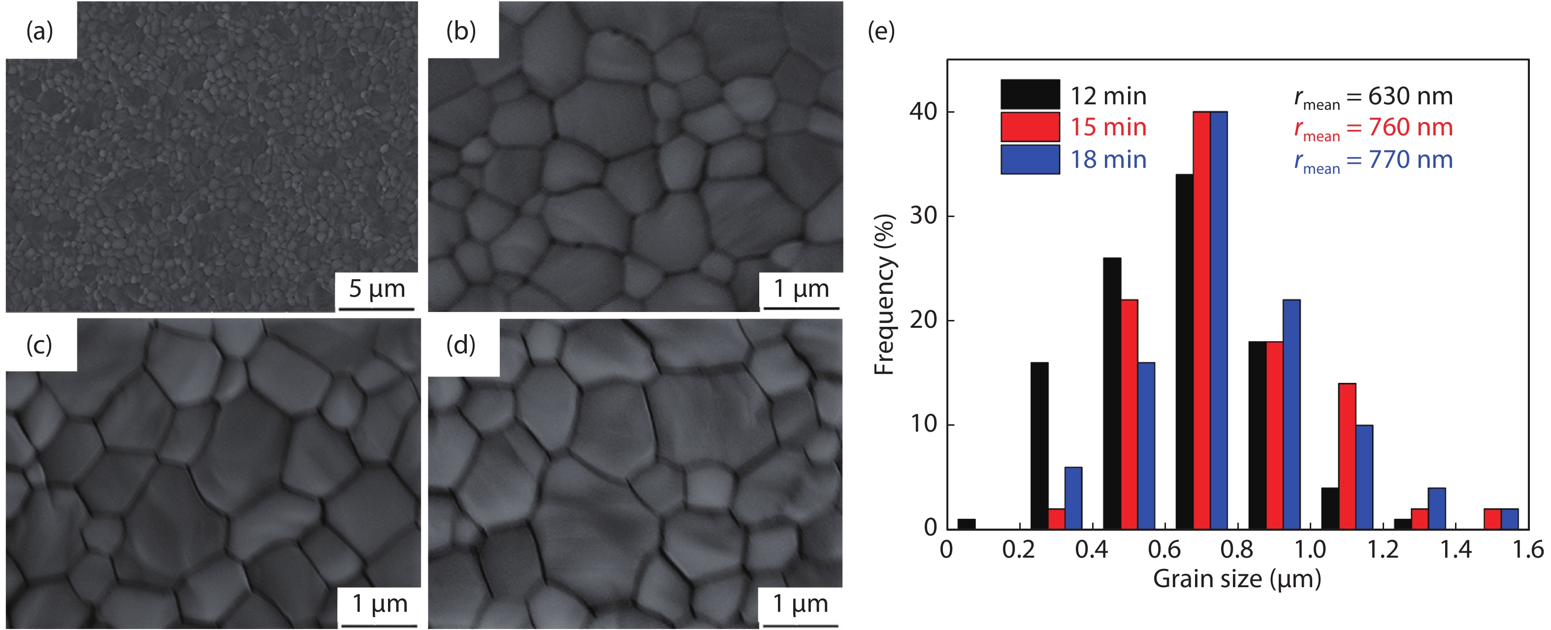 Ren X D, Yang Z, Yang D, et al. Modulating crystal grain size and optoelectronic properties of perovskite films for solar cells by reaction temperature. Nanoscale, 2016, 8, 3816 doi: 10.1039/C5NR08935B